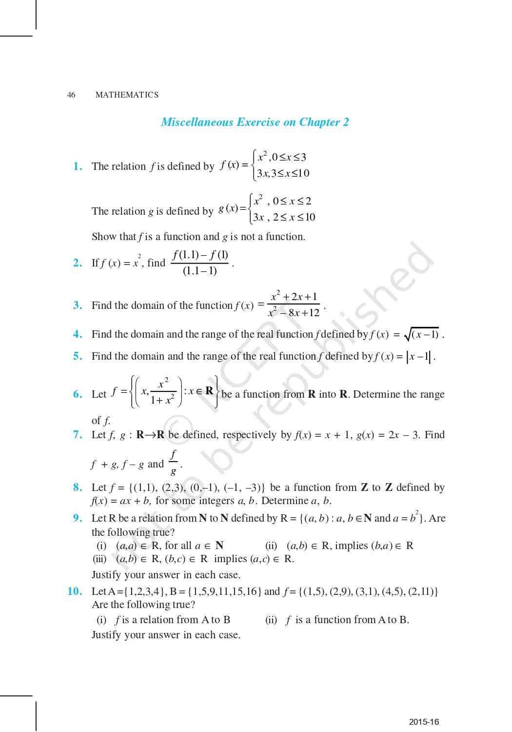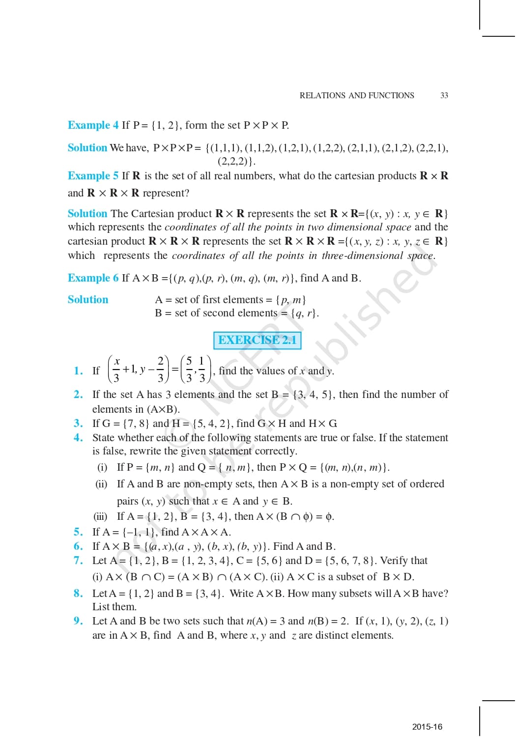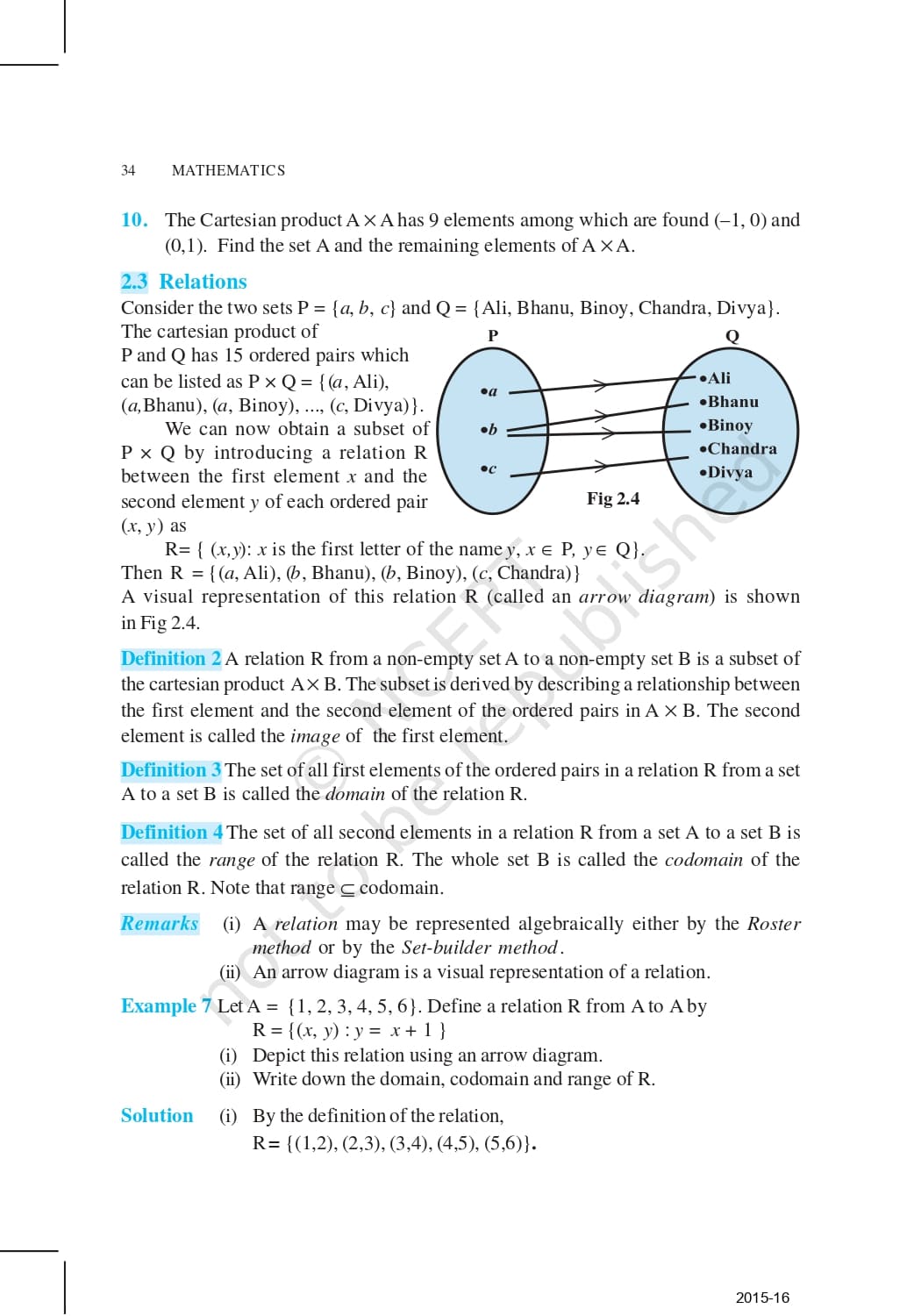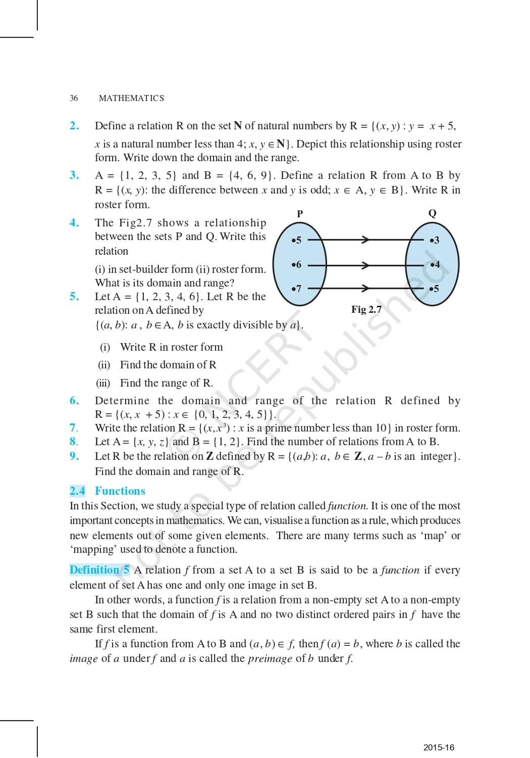 Class 11 Maths Ncert Book Chapter 2 – Relations and Functions