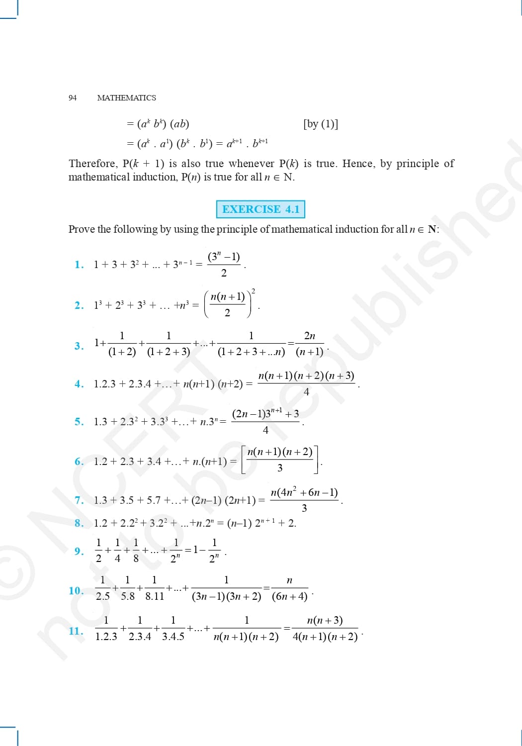 Ncert Books Class 11 Maths – Chapter 4 – Principle of Mathematical Induction – Pdf Download