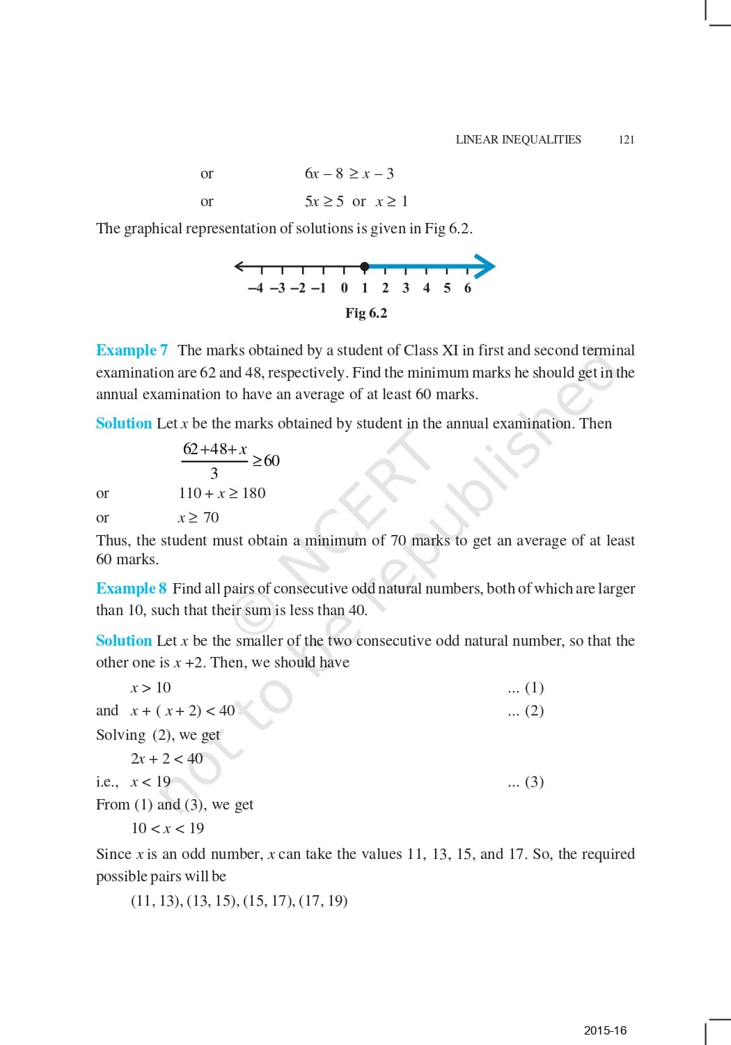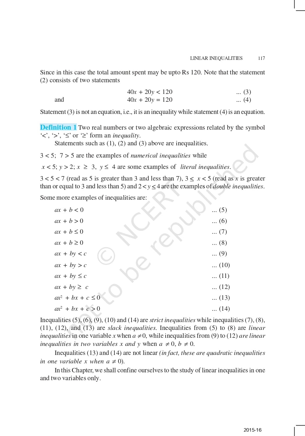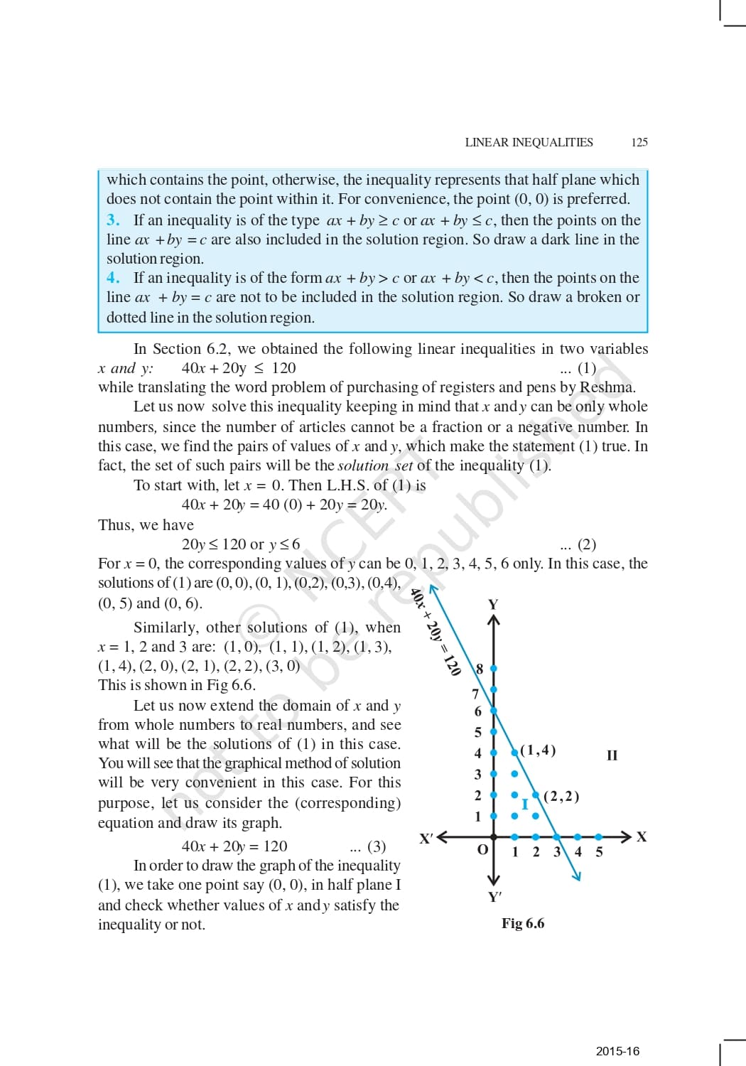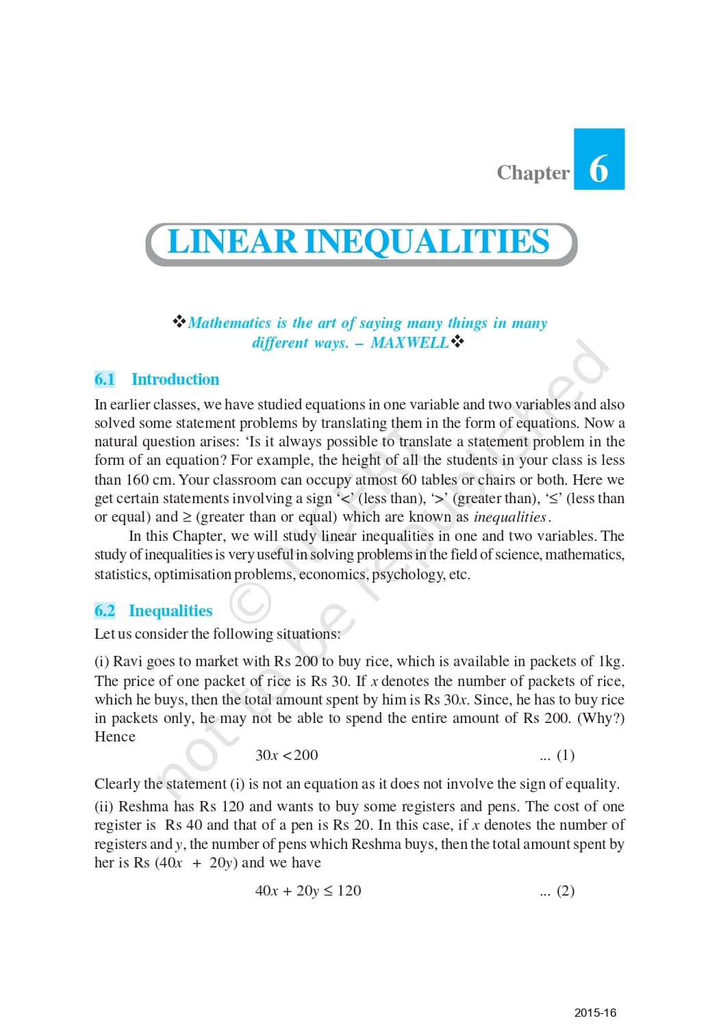 Ncert Books Class 11 Maths – Chapter 6 – Linear Inequalities – Pdf Download
