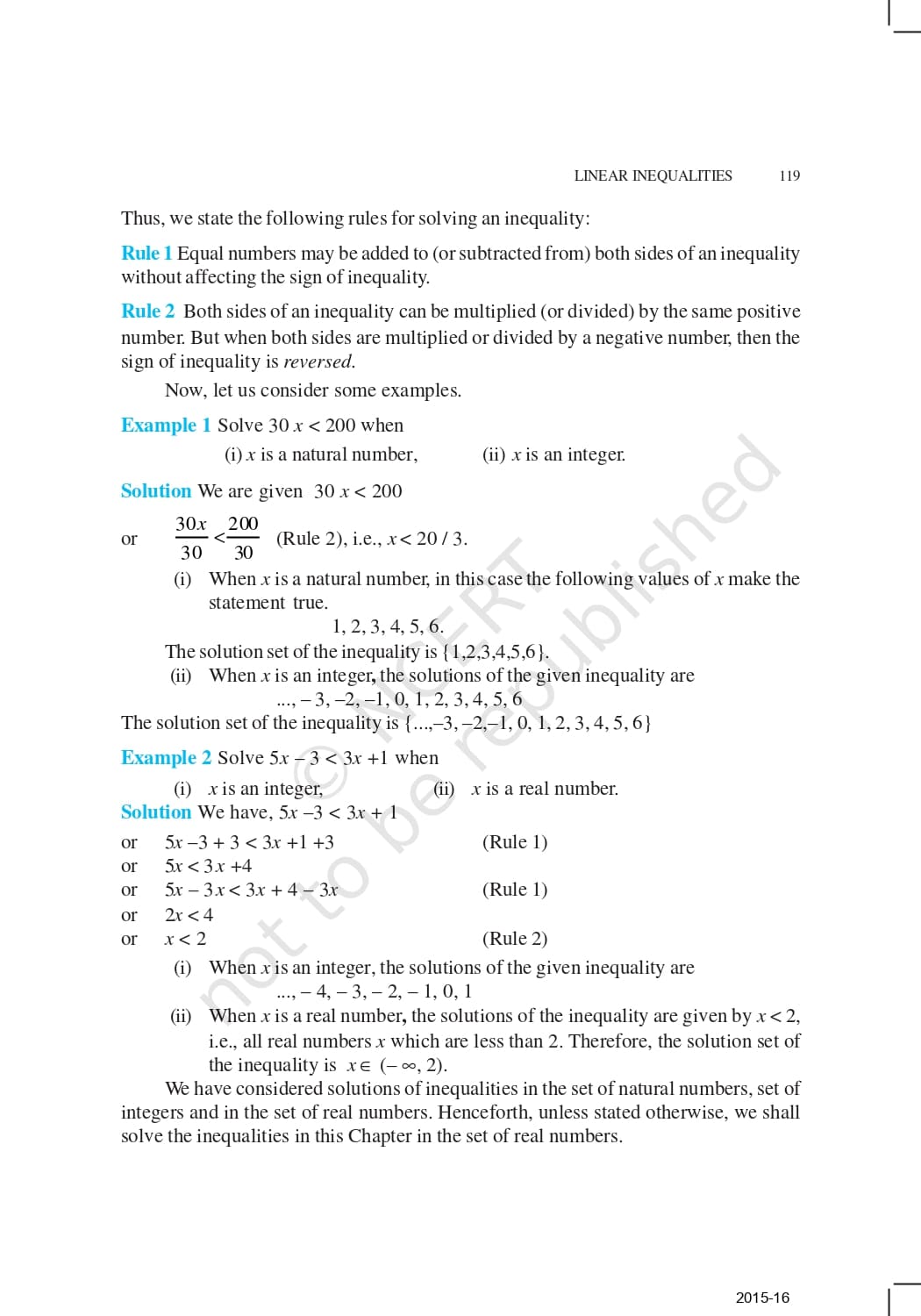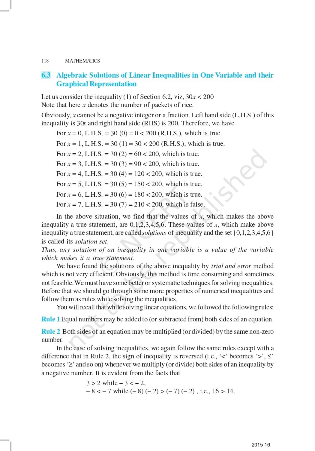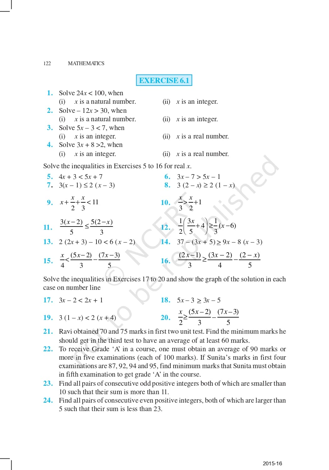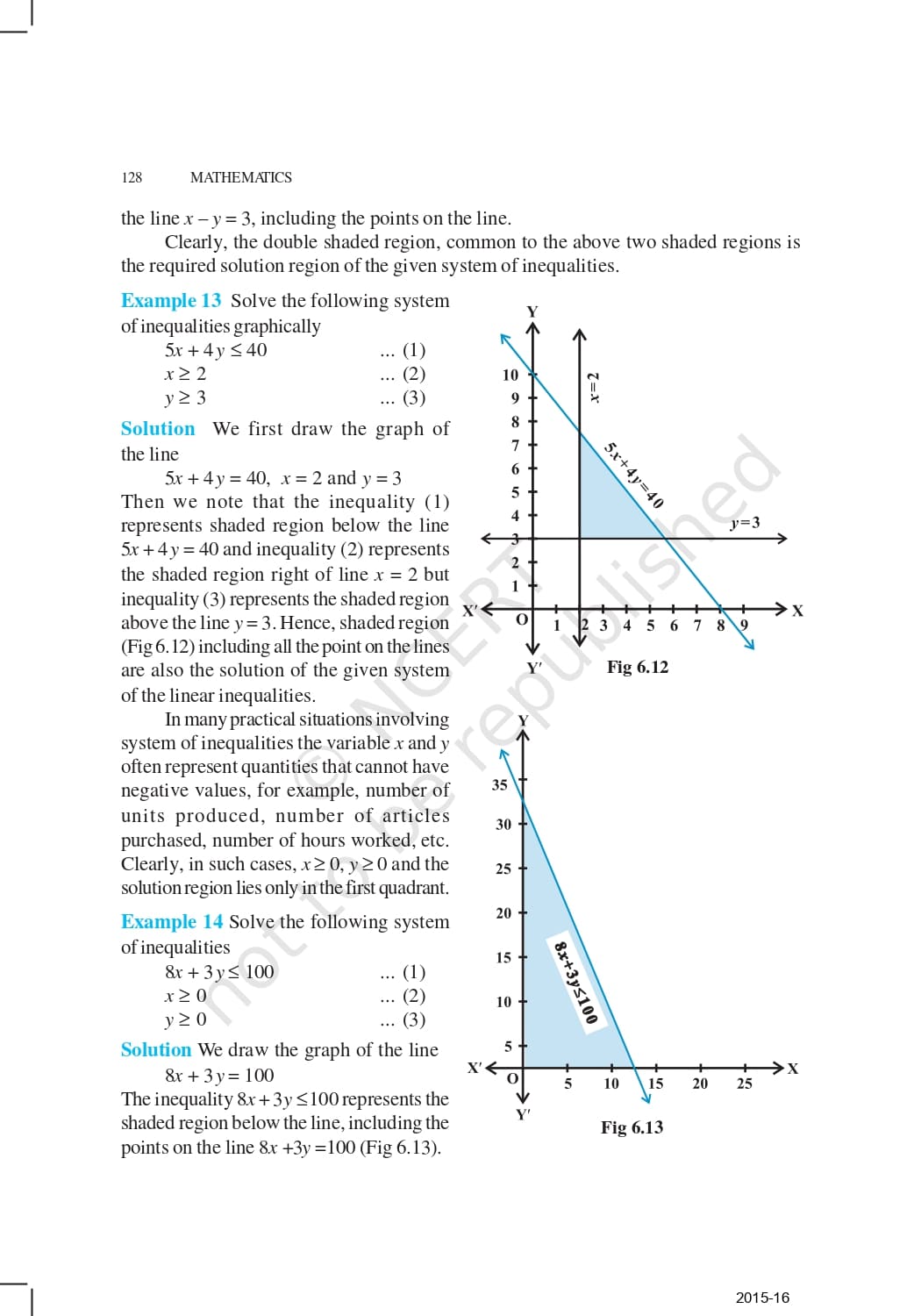 Ncert Books Class 11 Maths – Chapter 6 – Linear Inequalities – Pdf Download