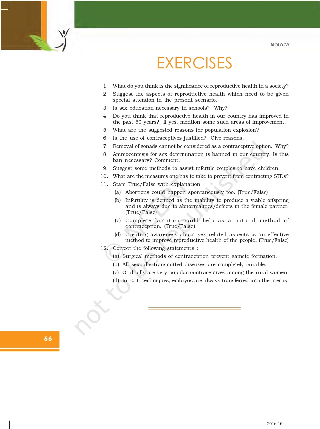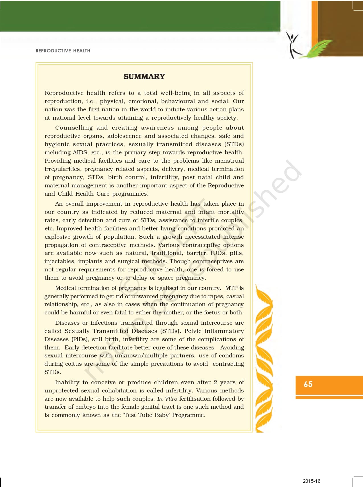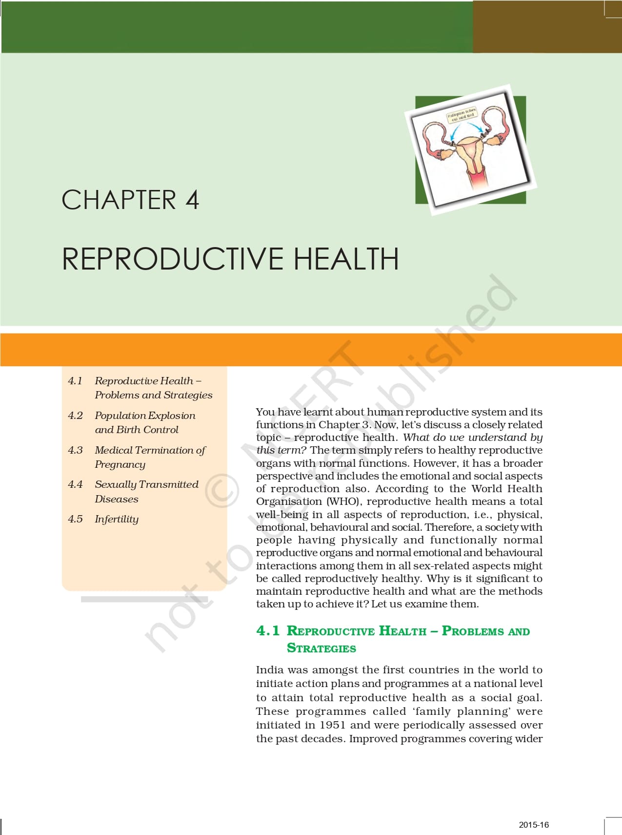 Ncert Book For Class 12 Biology | Chapter 4 – Reproductive Health – Read Online
