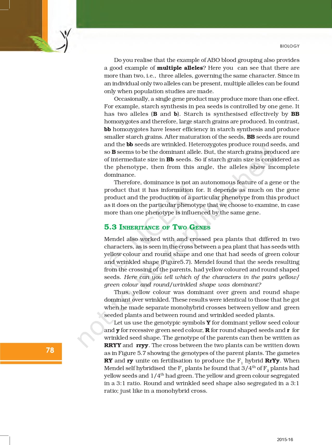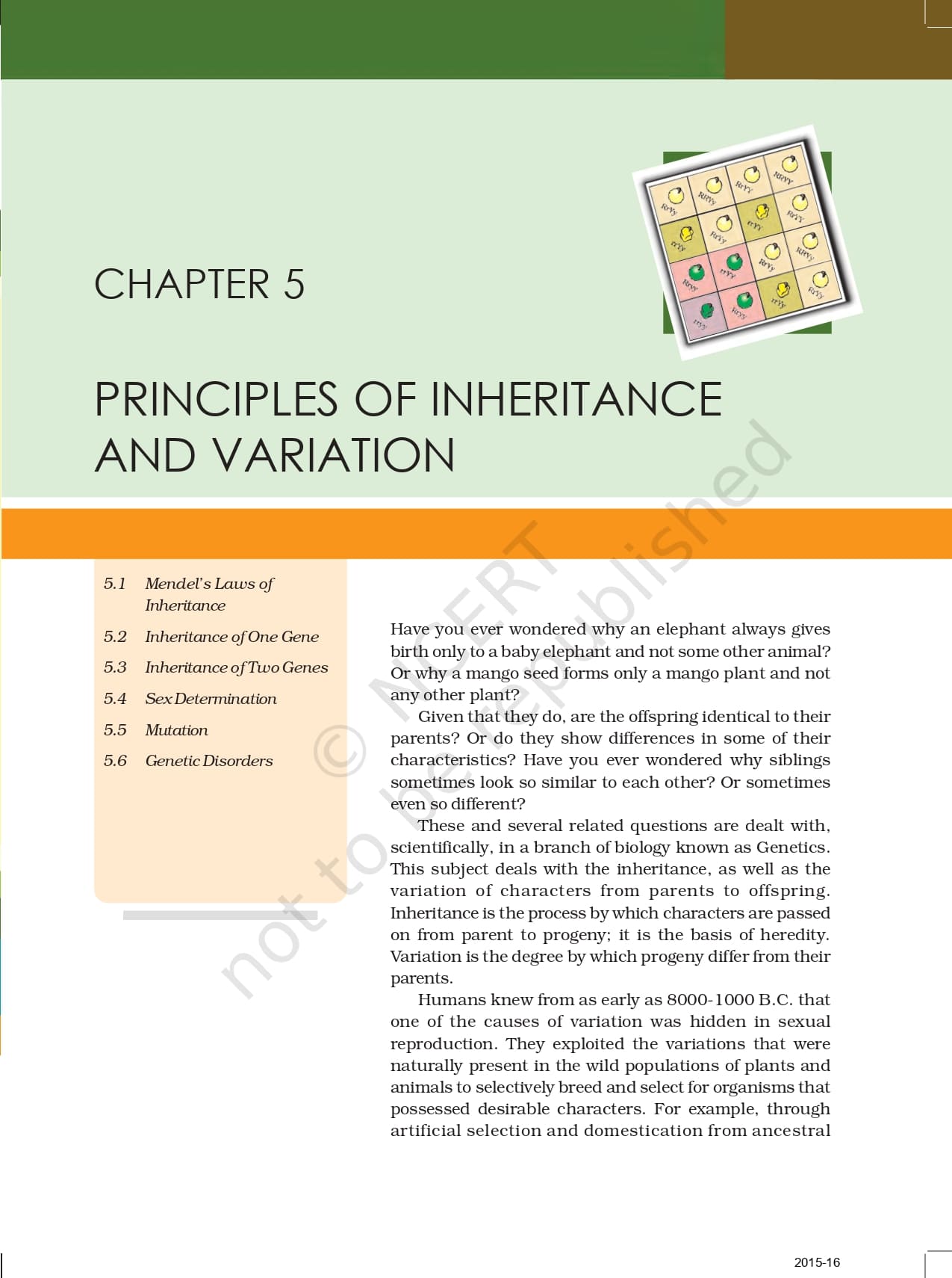 Ncert Book For Class 12 Biology | Chapter 5 – Principle of Inheritance and Variation – Read Online