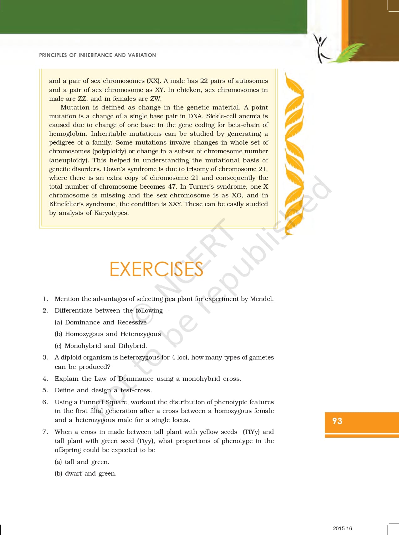 Chapter 5 – Principle of Inheritance and Variation