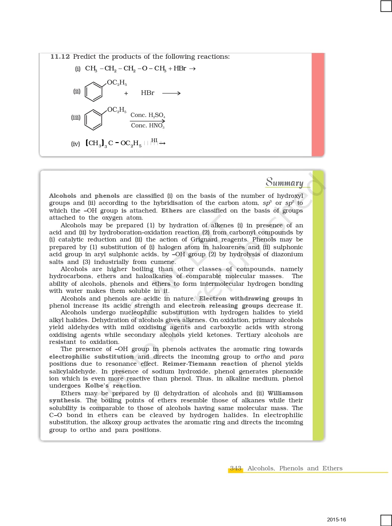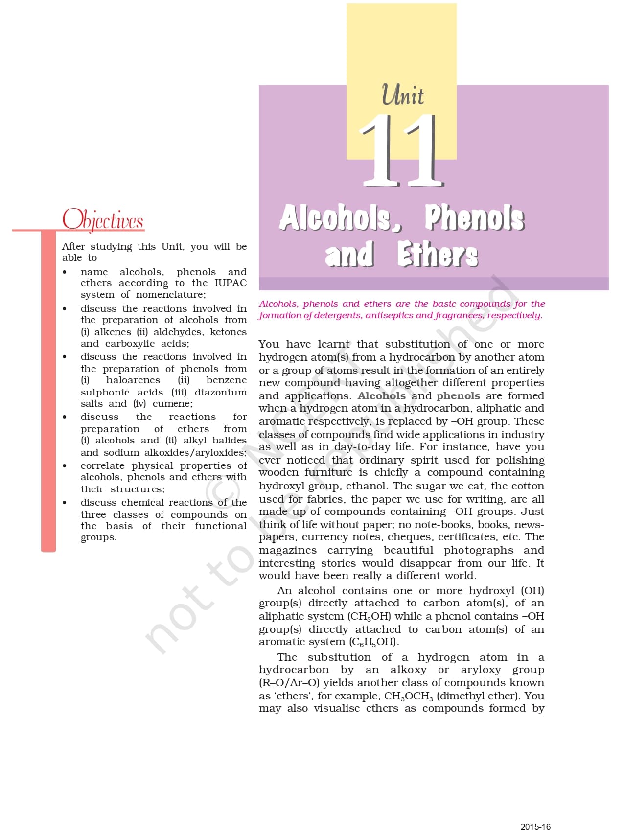 - Unit 11 Alcohols, Phenols and Ethers
