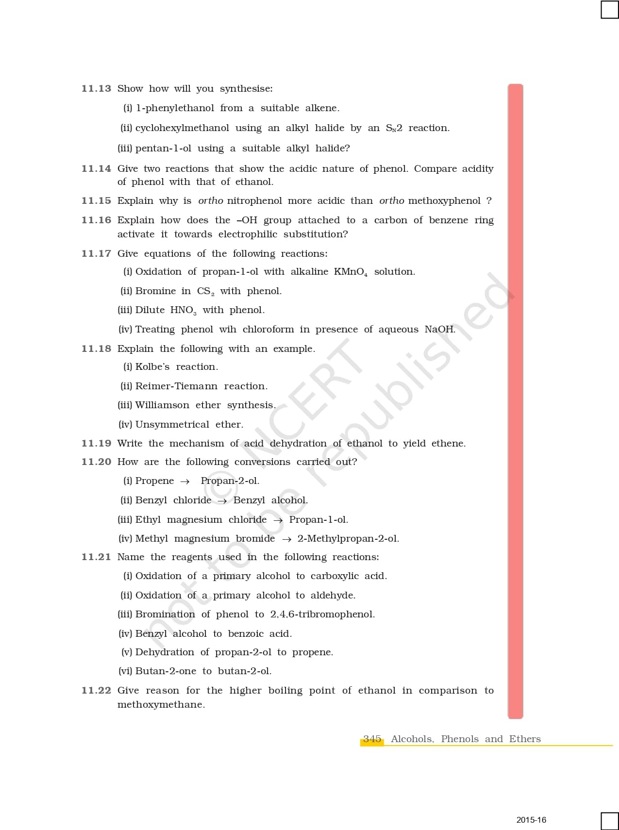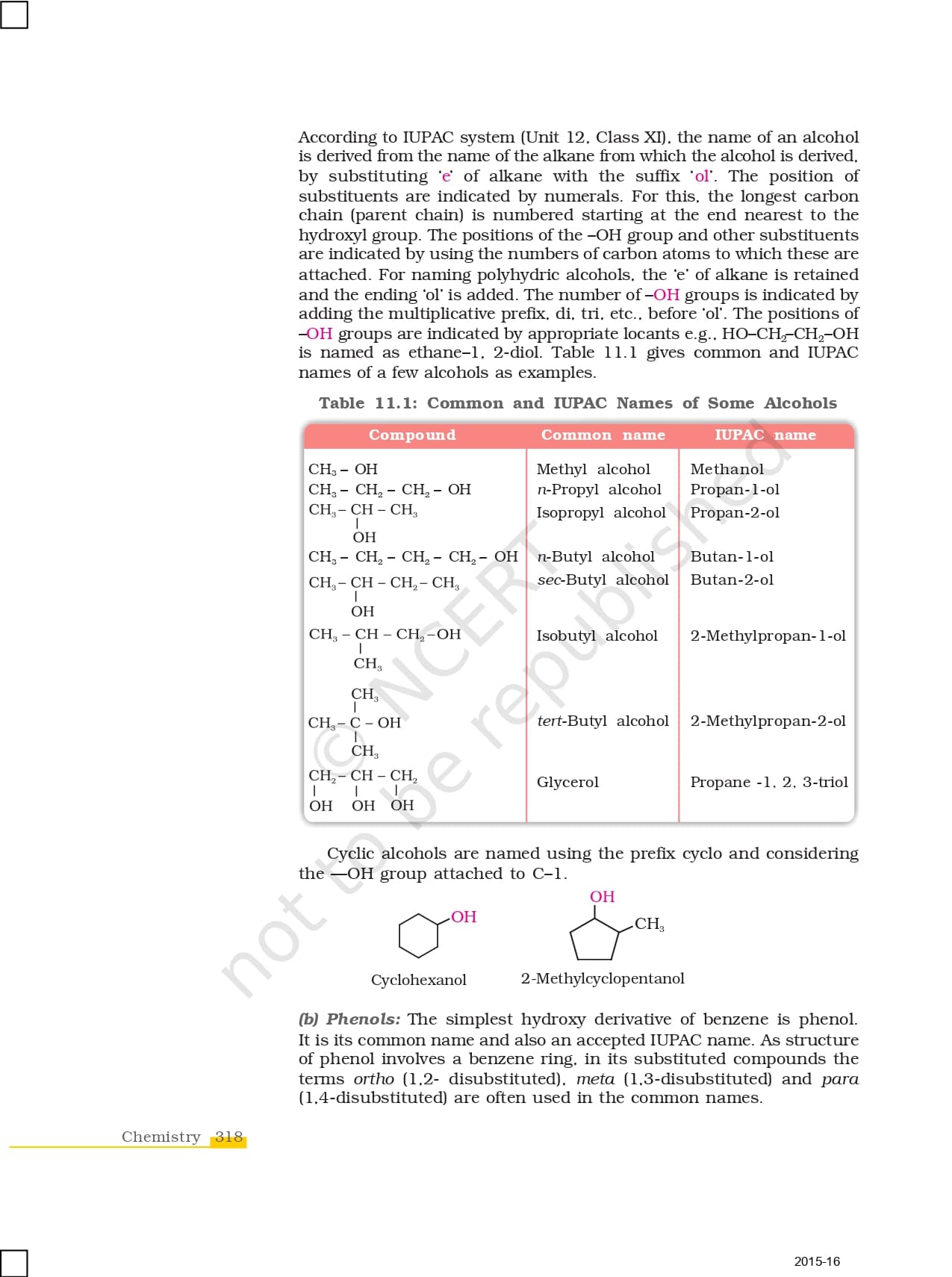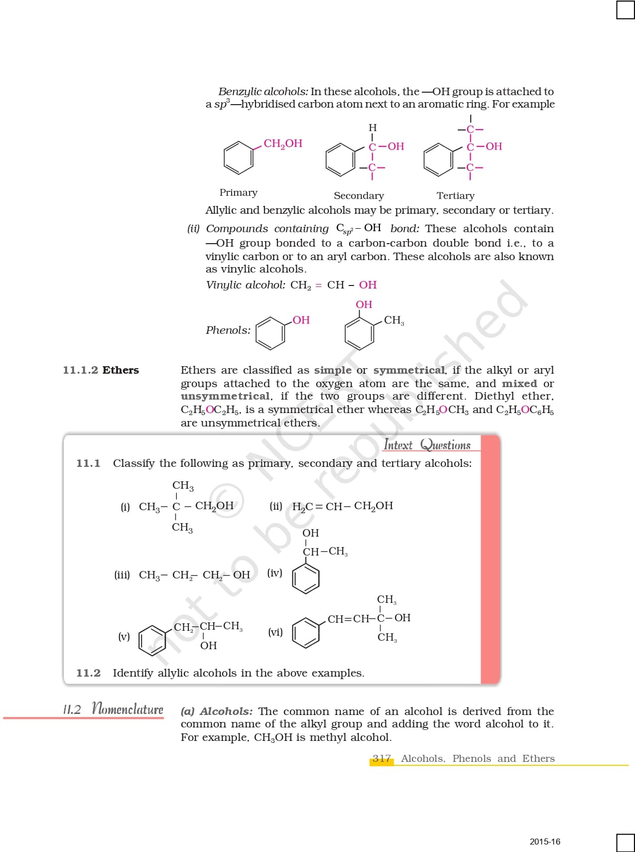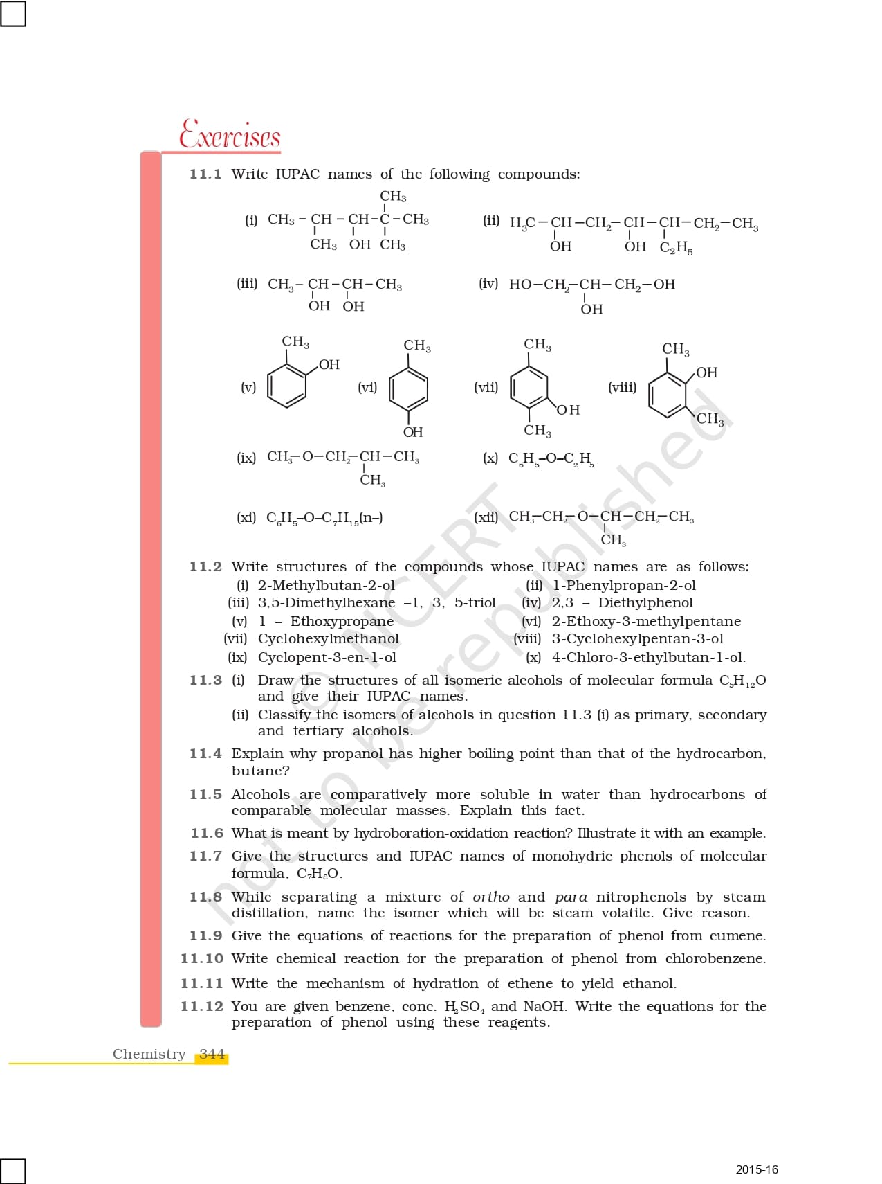 Ncert Books Class 12 Chemistry – Chapter 11 – Alcohols, Phenols and Ethers