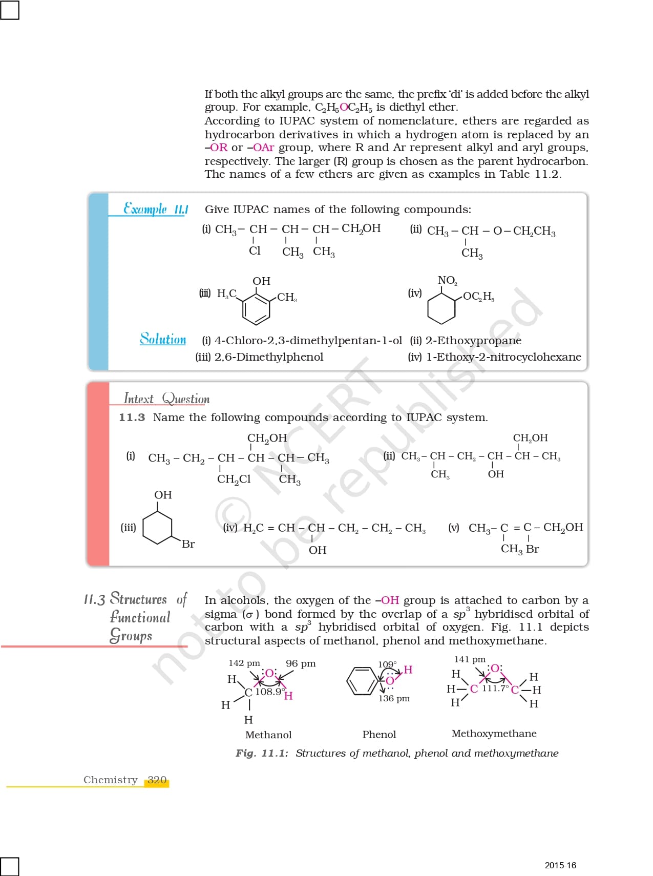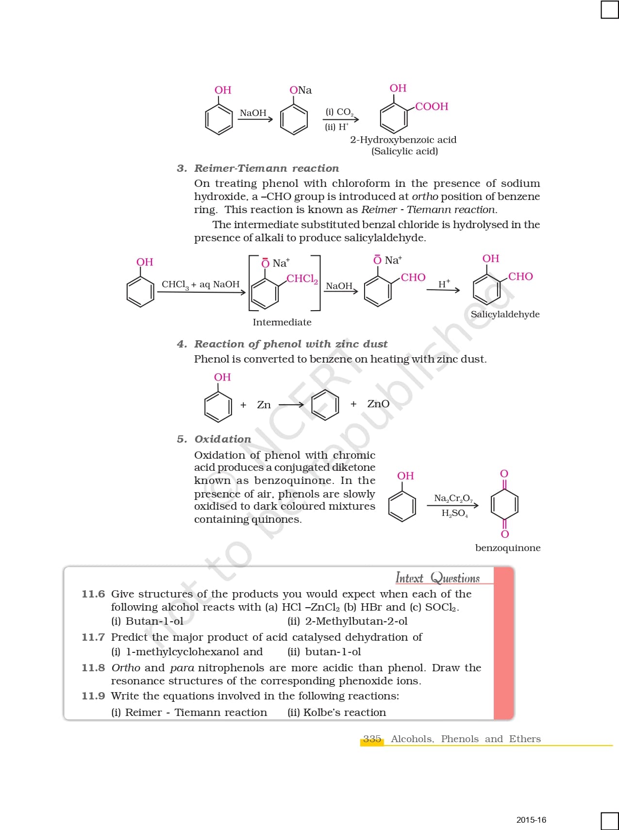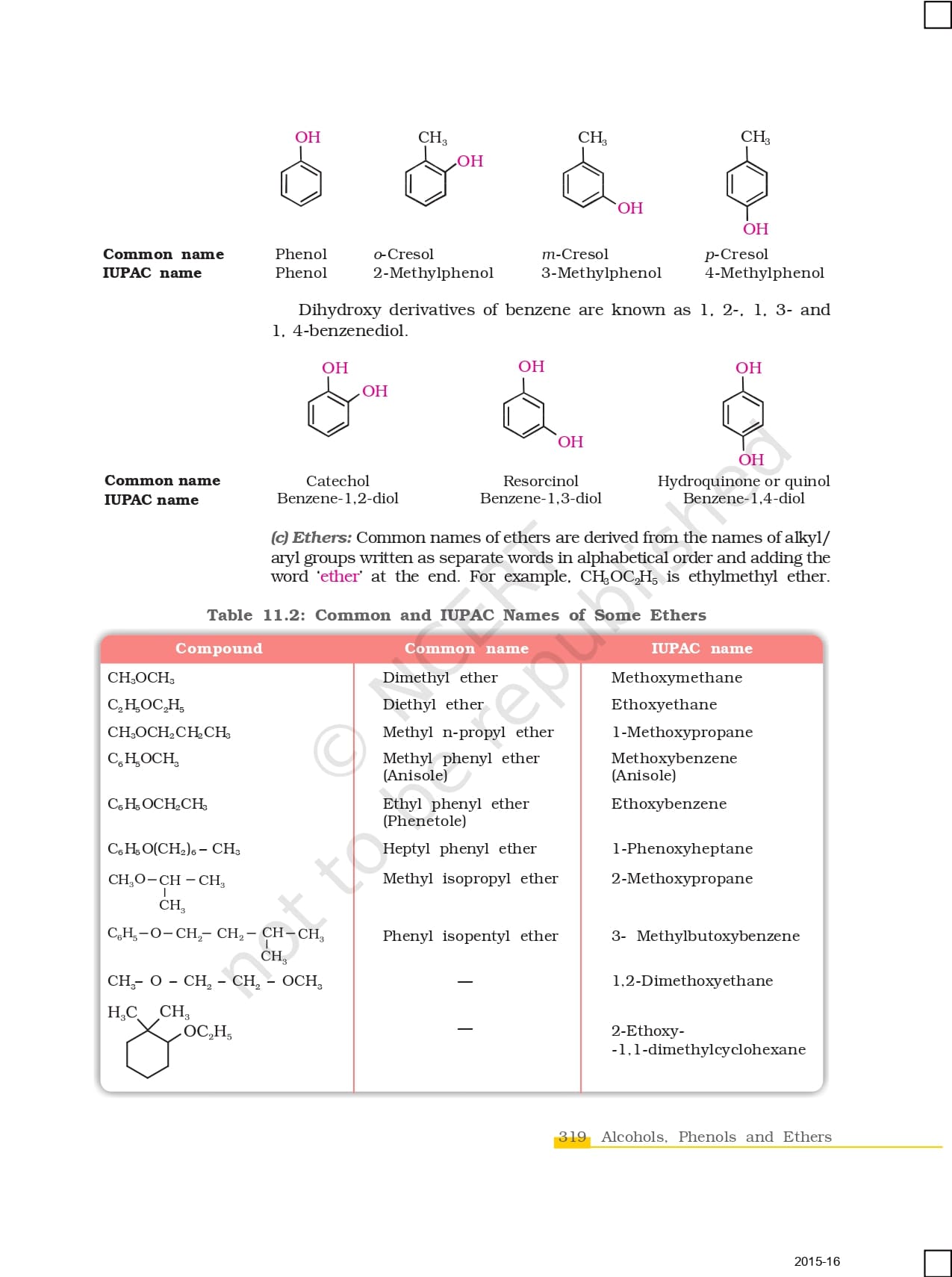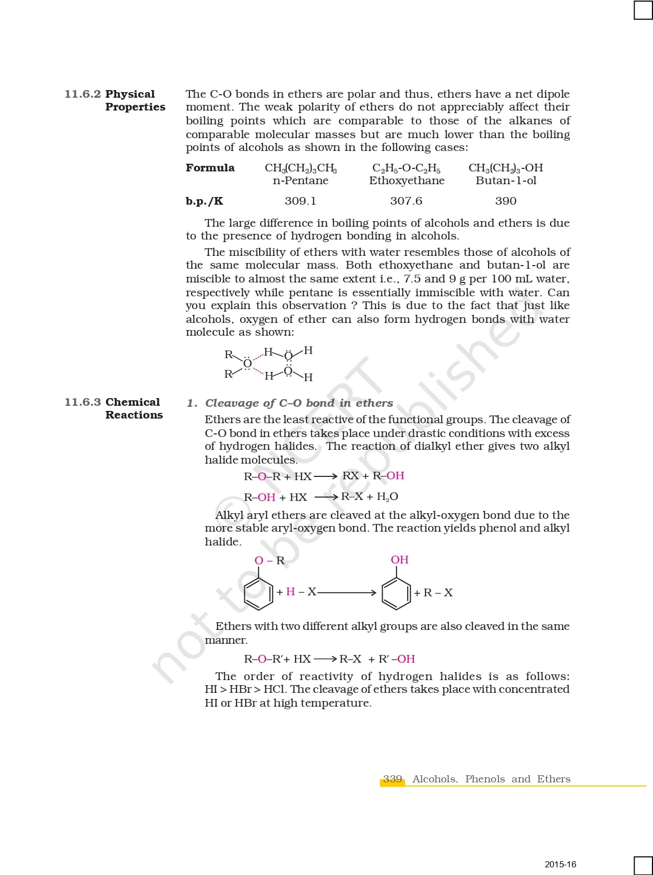 Ncert Books Class 12 Chemistry – Chapter 11 – Alcohols, Phenols and Ethers