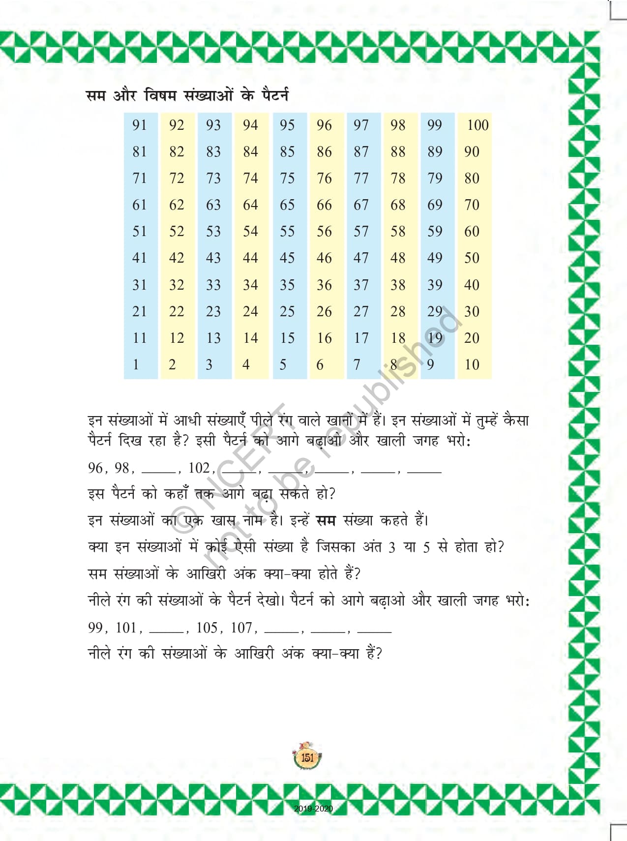 Class 3 Ncert Book गणित का जादू Chapter 10 – पैटर्न की पहचान
