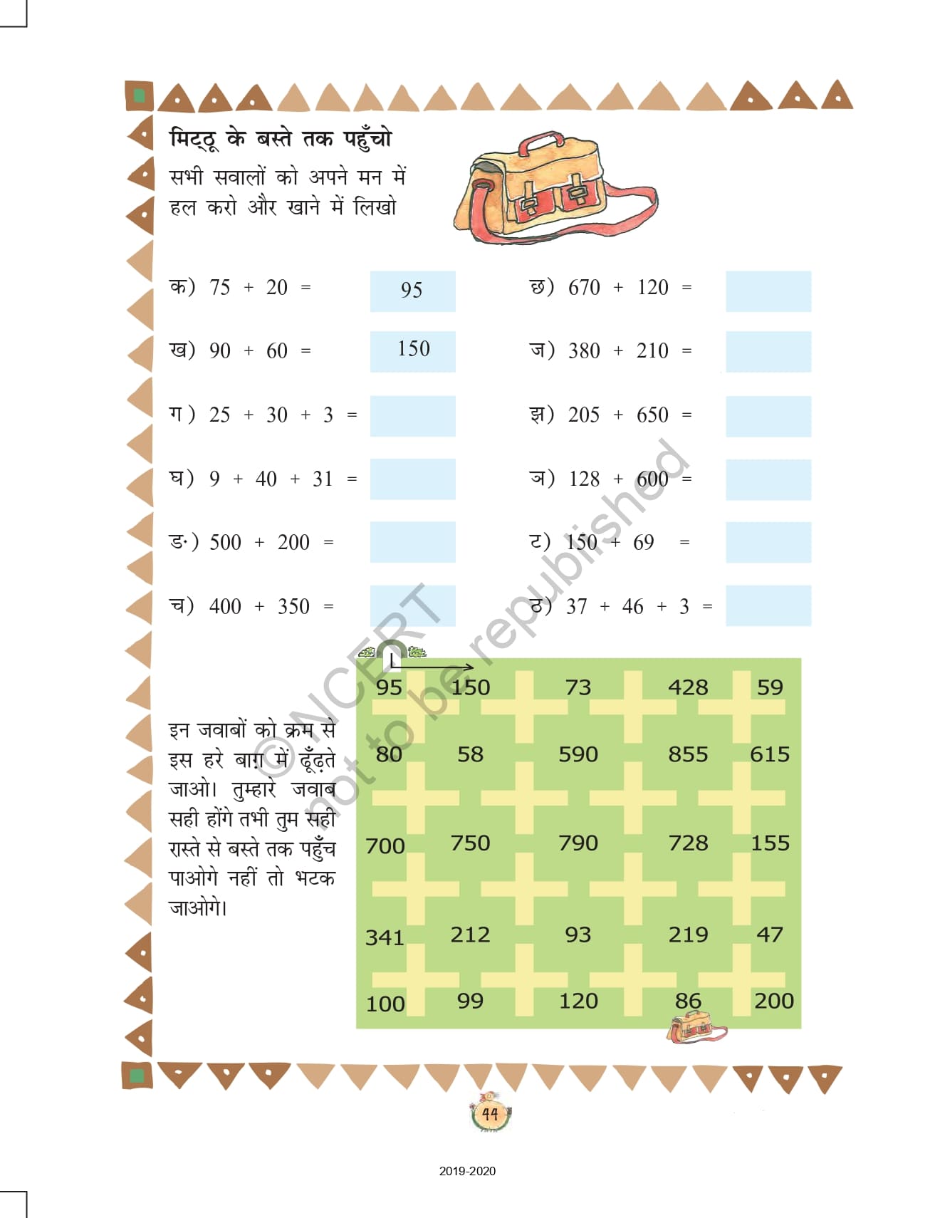 Ncert Books Class 3 Maths in Hindi Pdf – Chapter 3 – कुछ लेना कुछ देना