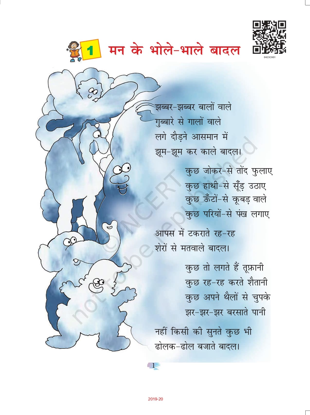 Class 4 Ncert Book Hindi Rimjhim Chapter 1 – मन के भोले-भाले बादल