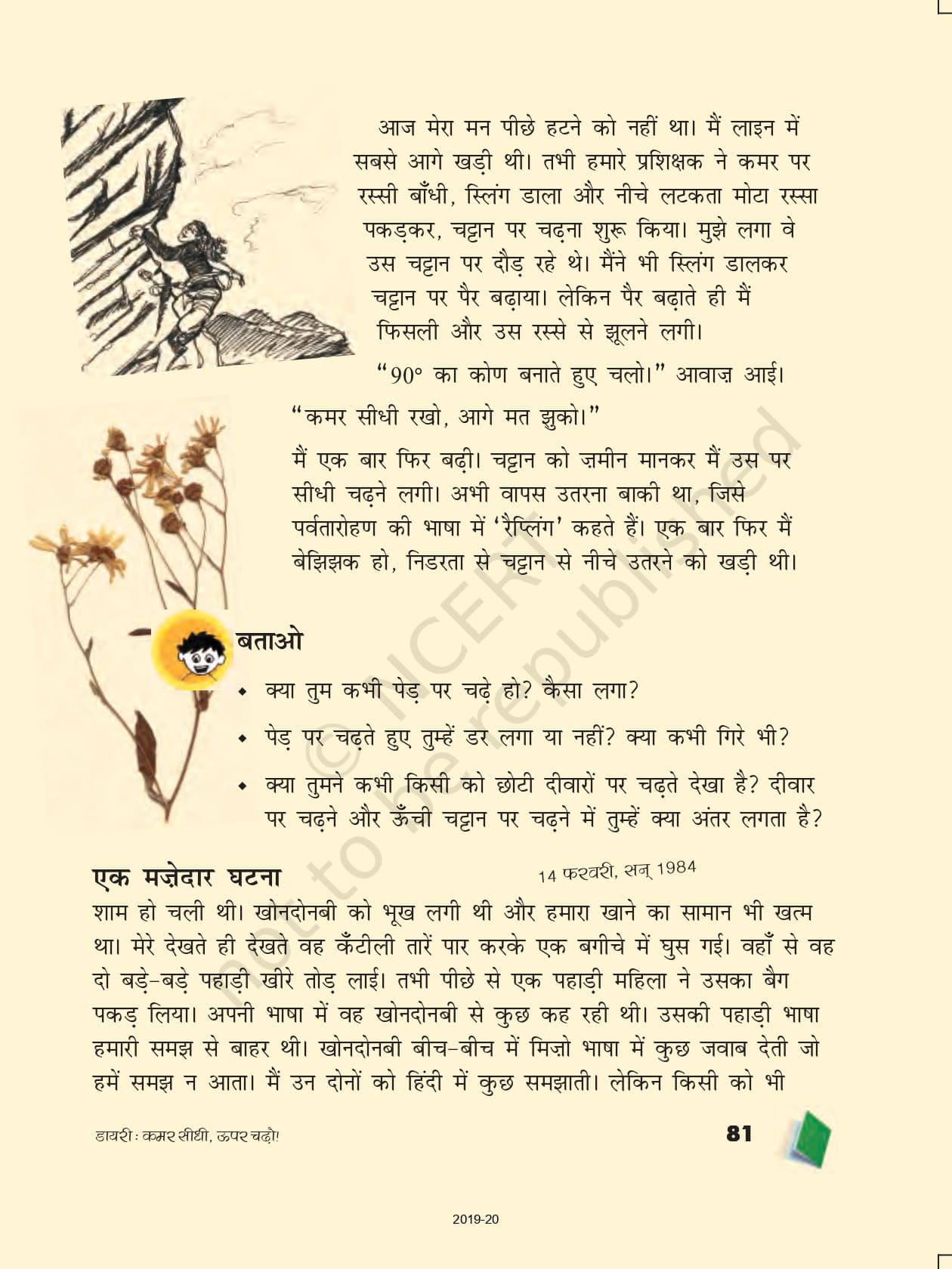 - पाठ 9: डायरी: कमर सीधी, ऊपर चढ़ो!