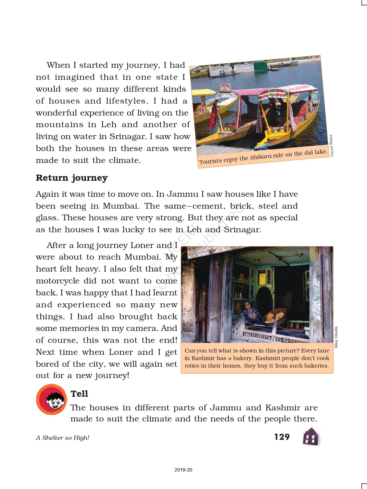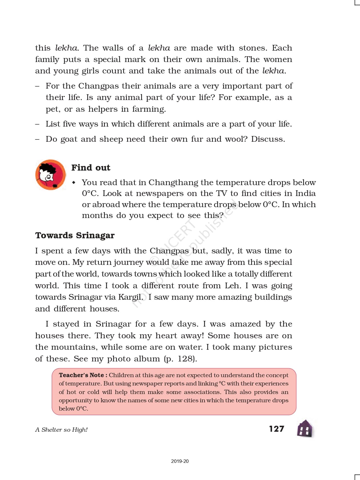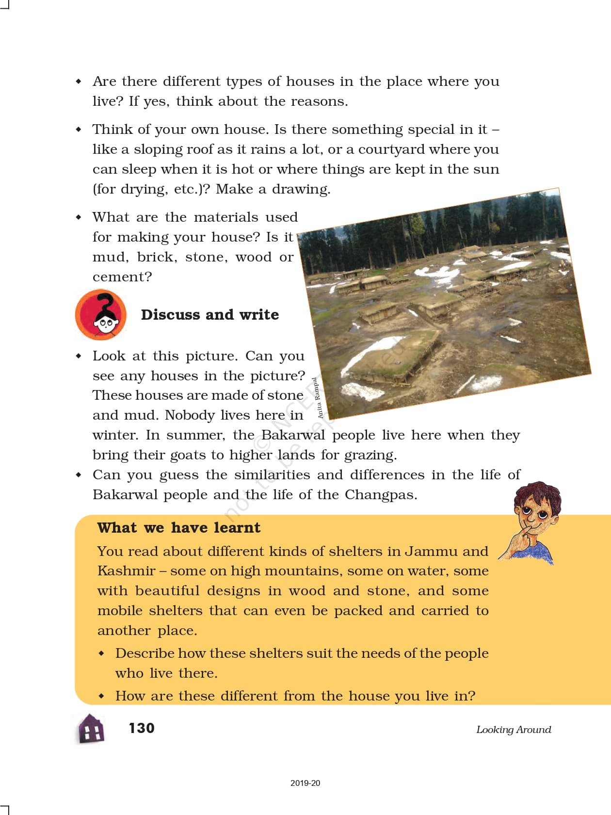 Class 5 Ncert Book EVS (Looking around) Chapter 13 – A Shelter so High!