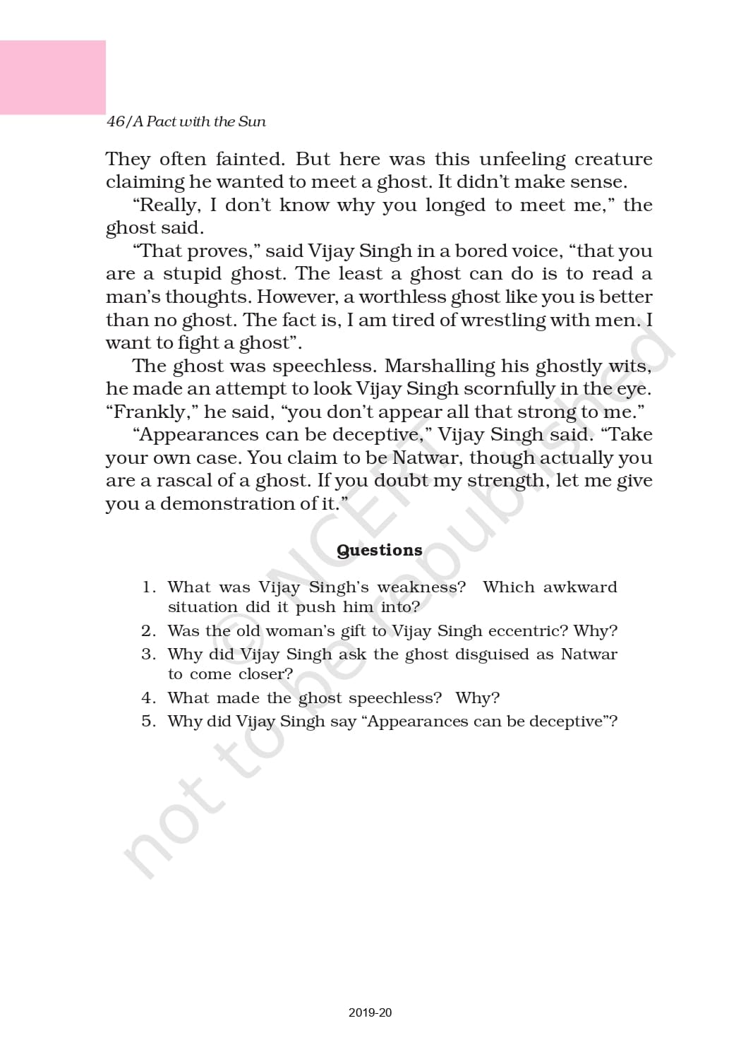 Ncert Books Class 6 English A Pact With The Sun – Chapter 10 – A Strange Wrestling Match