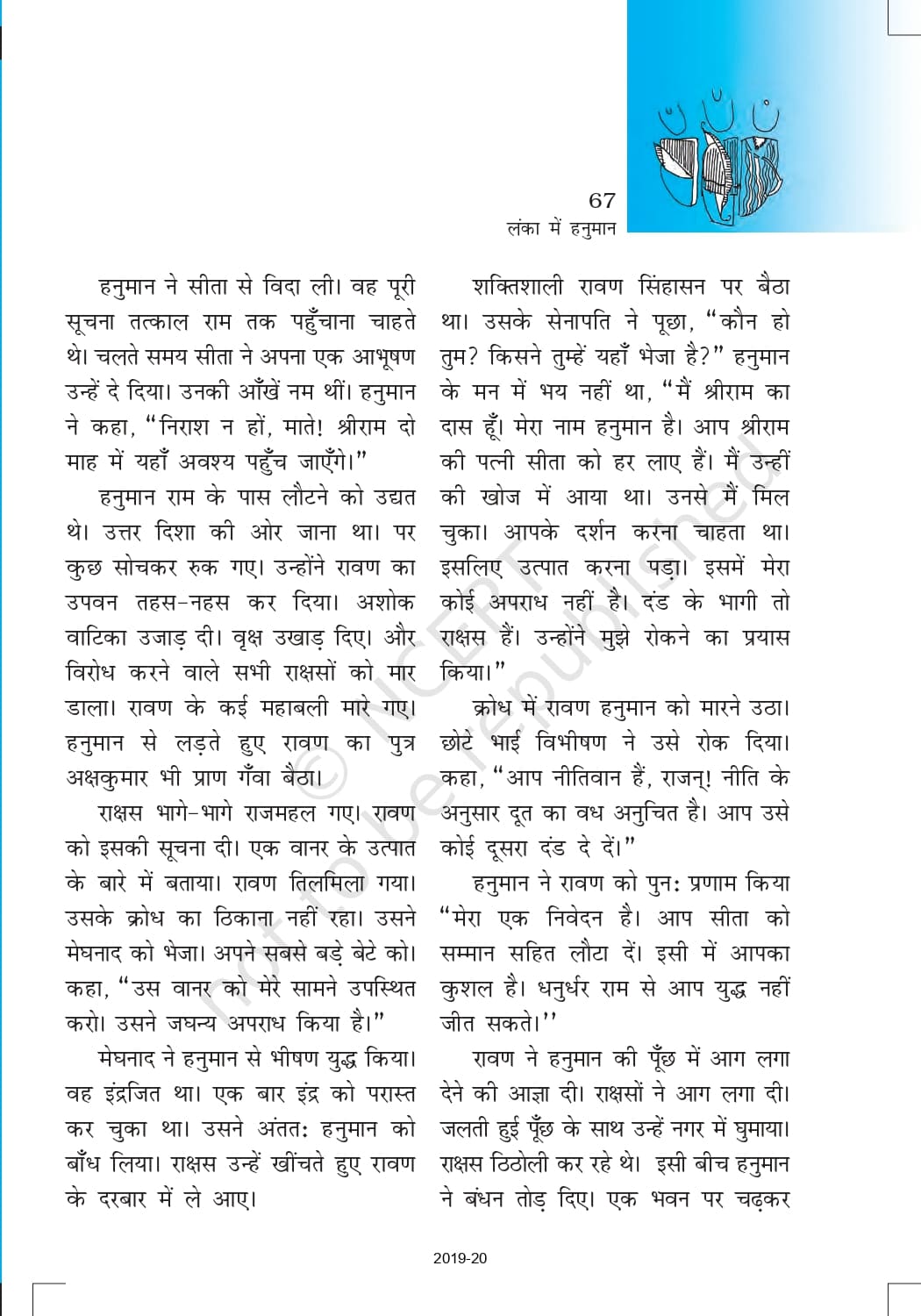 Class 6 Ncert Book Hindi बाल राम कथा Chapter 10 Pdf – लंका में हनुमान