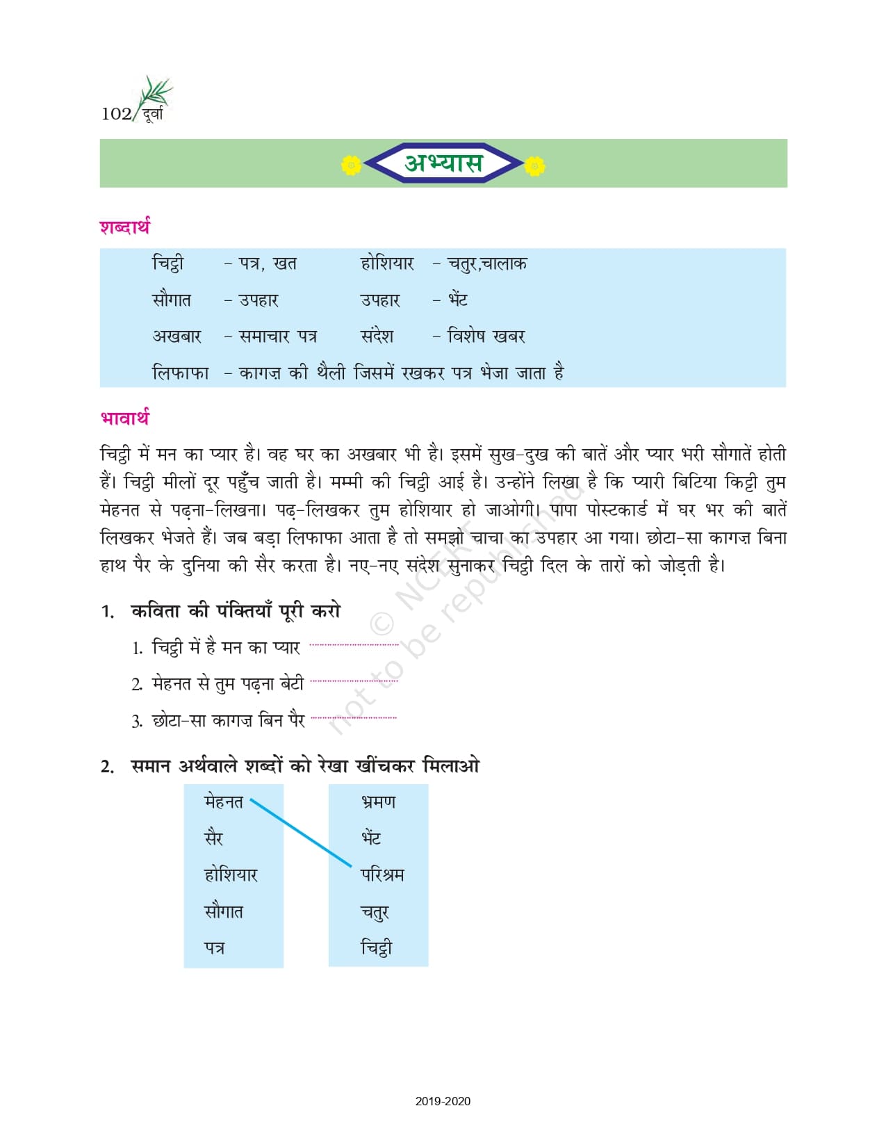 Ncert Books Class 6 Hindi Durva दूर्वा Pdf – Chapter 20 – चिट्ठी