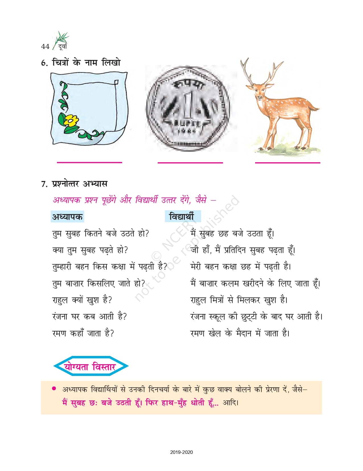 Download the latest version of Class 6 Hindi Durva Ncert Book Chapter – 8 PDF at Utopper. It provides step by step Solution PDF. You can download Ncert Solutions with a free PDF download option, which includes chapter wise solutions. All the questions in RS Aggarwal Solutions have been solved and explained by expert mathematics teachers as per the CBSE Board guidelines. By studying these Maths Solutions, you can easily get good marks in the CBSE board exams.
