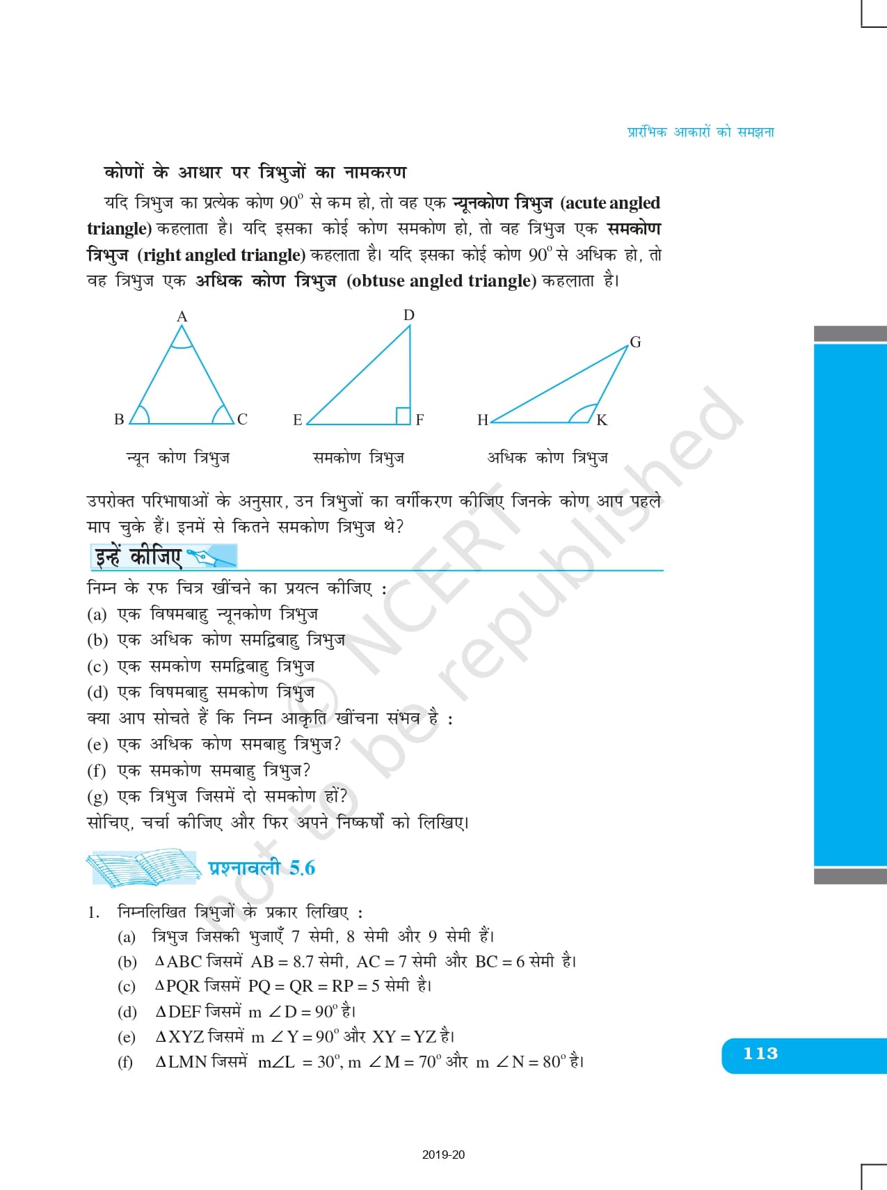 Ncert Books Class 6 गणित Pdf – Chapter 5 – प्रारंभिक आकारों को समझना