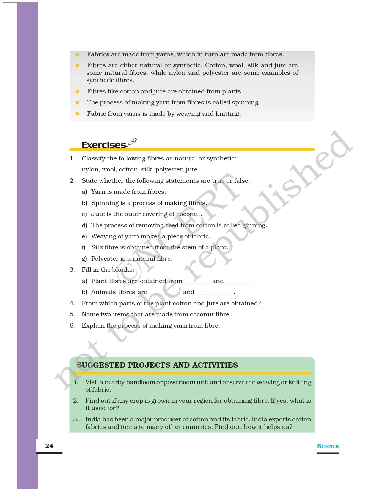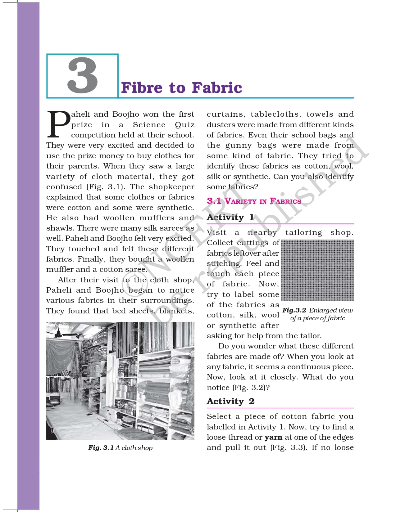 Ncert Books Class 6 Science – Chapter 3 – Fibre to Fabric