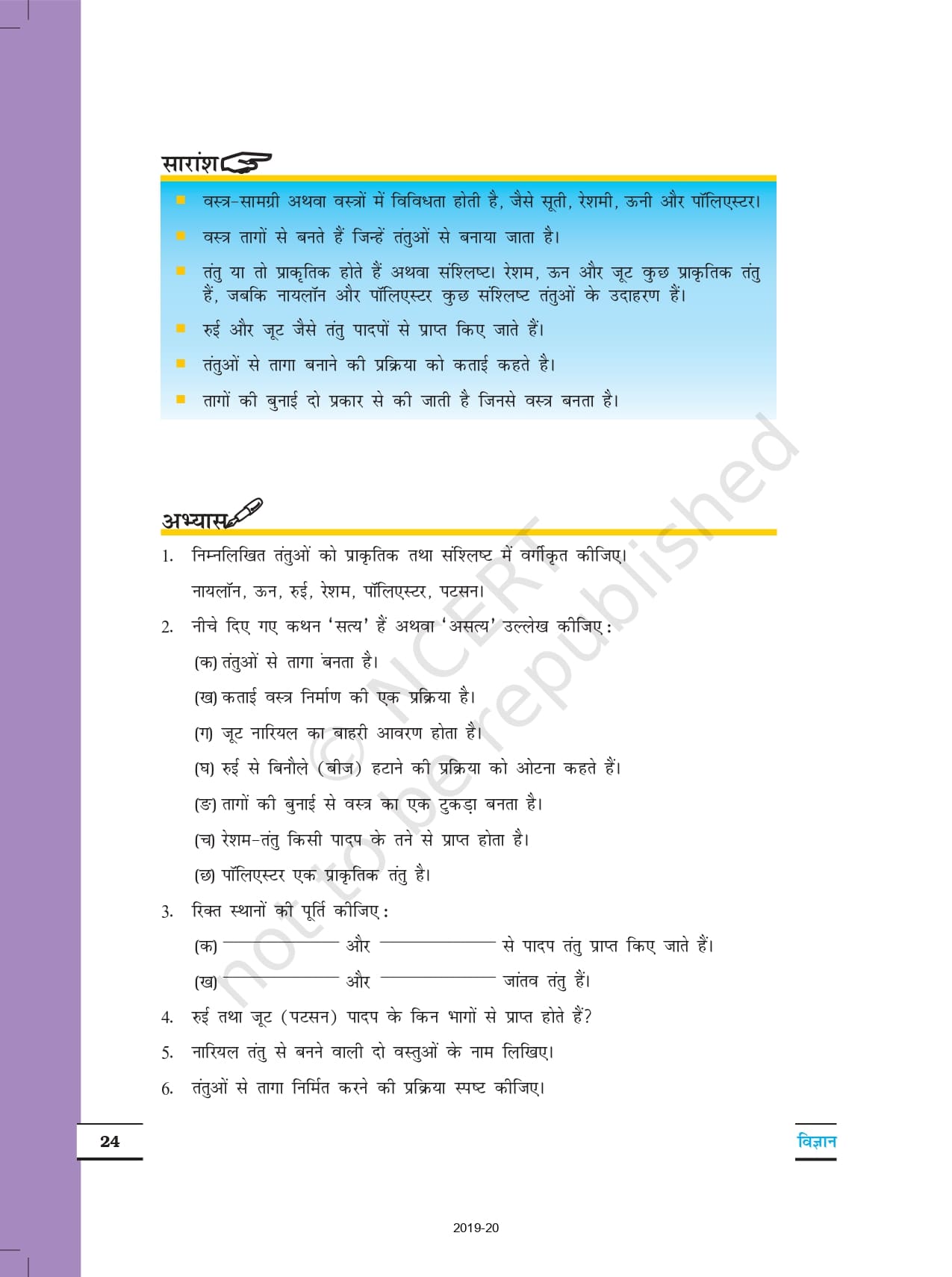 Ncert Books Class 6 Science (विज्ञान) – Chapter 3 – तंतु से वस्त्र तक