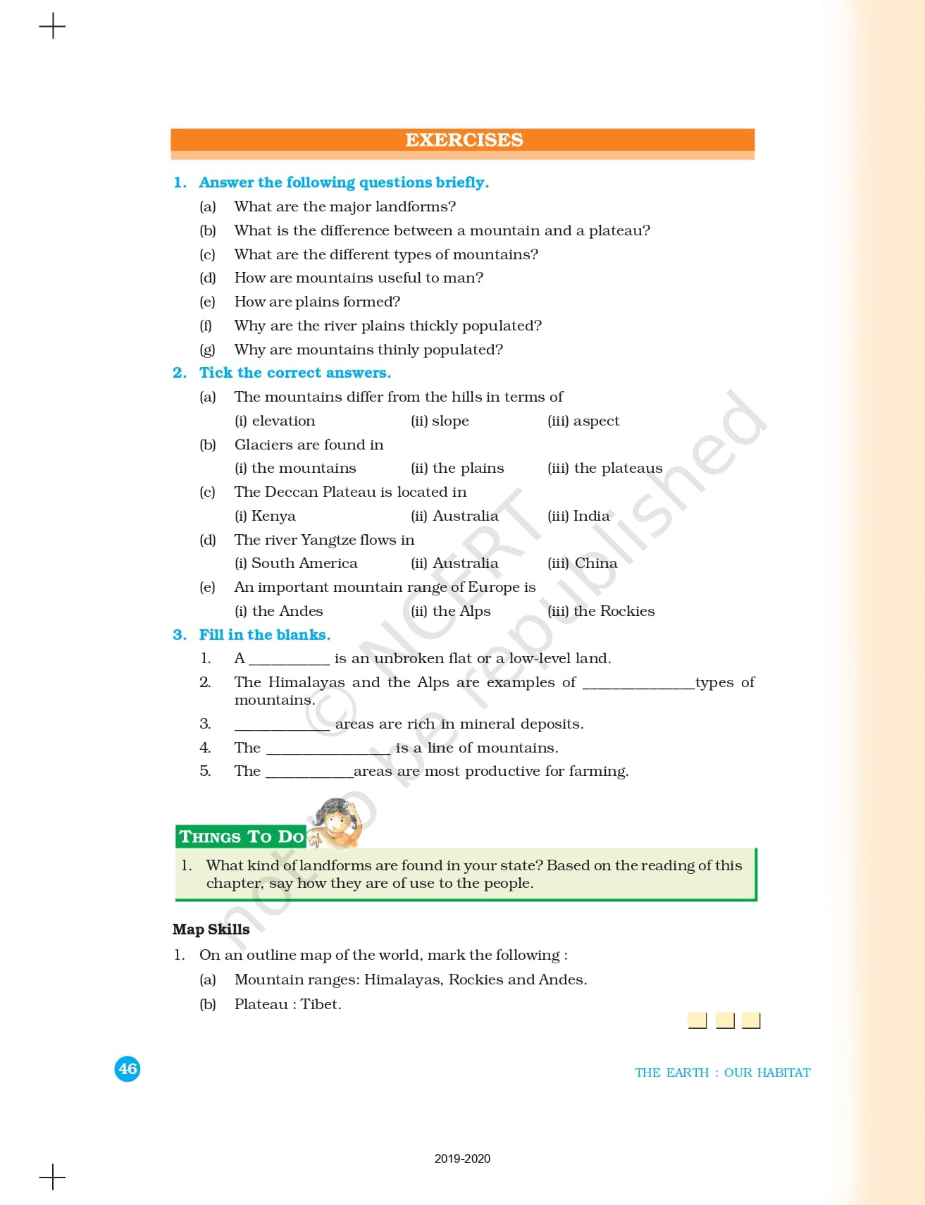Ncert Books Class 6 Social Science Geography The Earth Our Habitat – Chapter 6 – Major Landforms of the Earth
