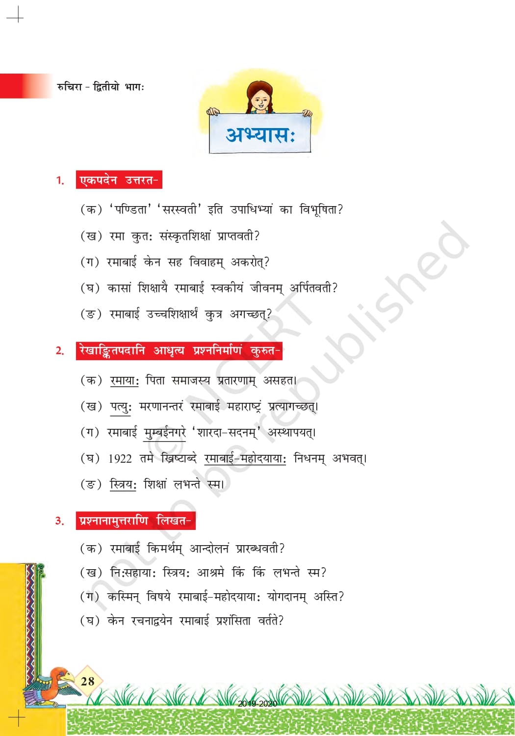 Class 7 Ncert Book Sanskrit (रुचिरा) – Chapter 5 पण्डिता रमाबाई