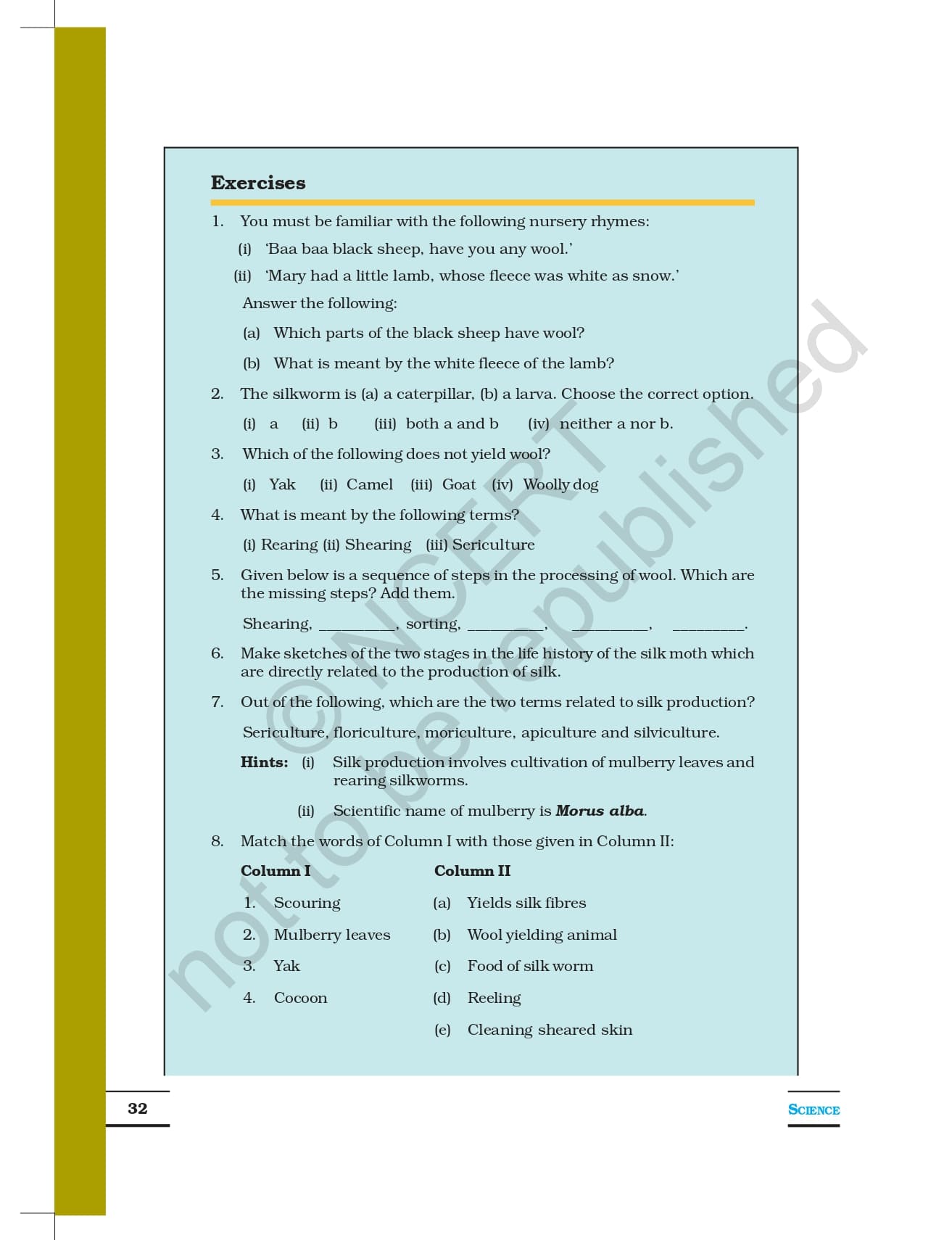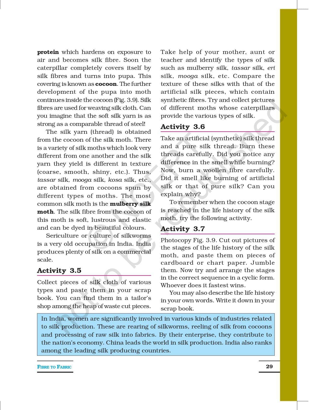Ncert Books Class 7 Science – Chapter 3 – Fibre to Fabric