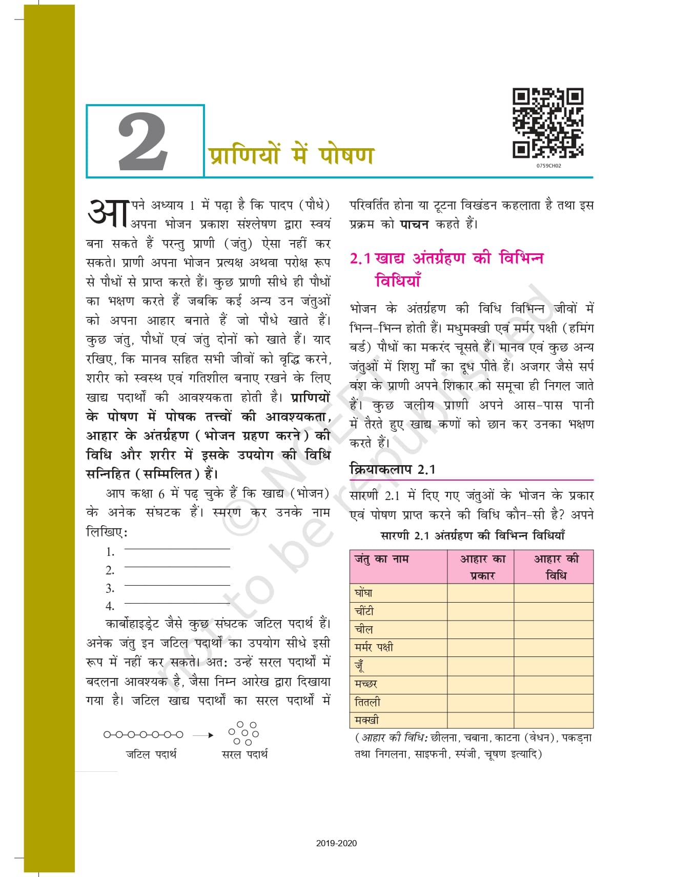 - अध्याय 2: प्राणियों में पोषण