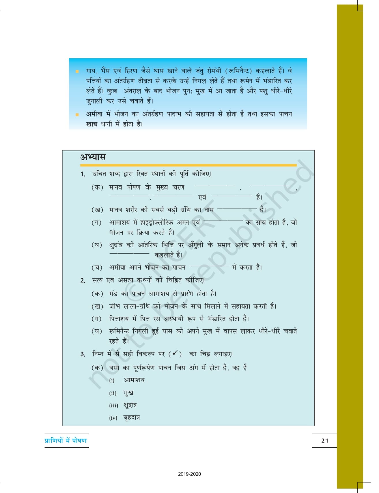 Ncert Books Class 7 Science (विज्ञान) – Chapter 2 – प्राणियों में पोषण