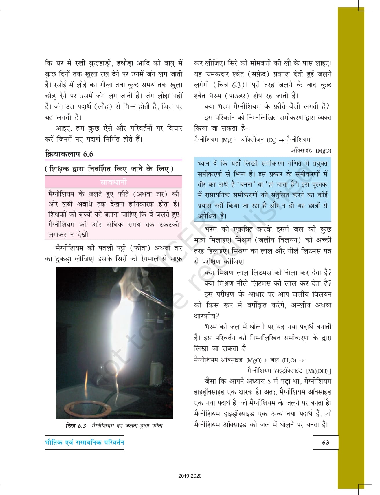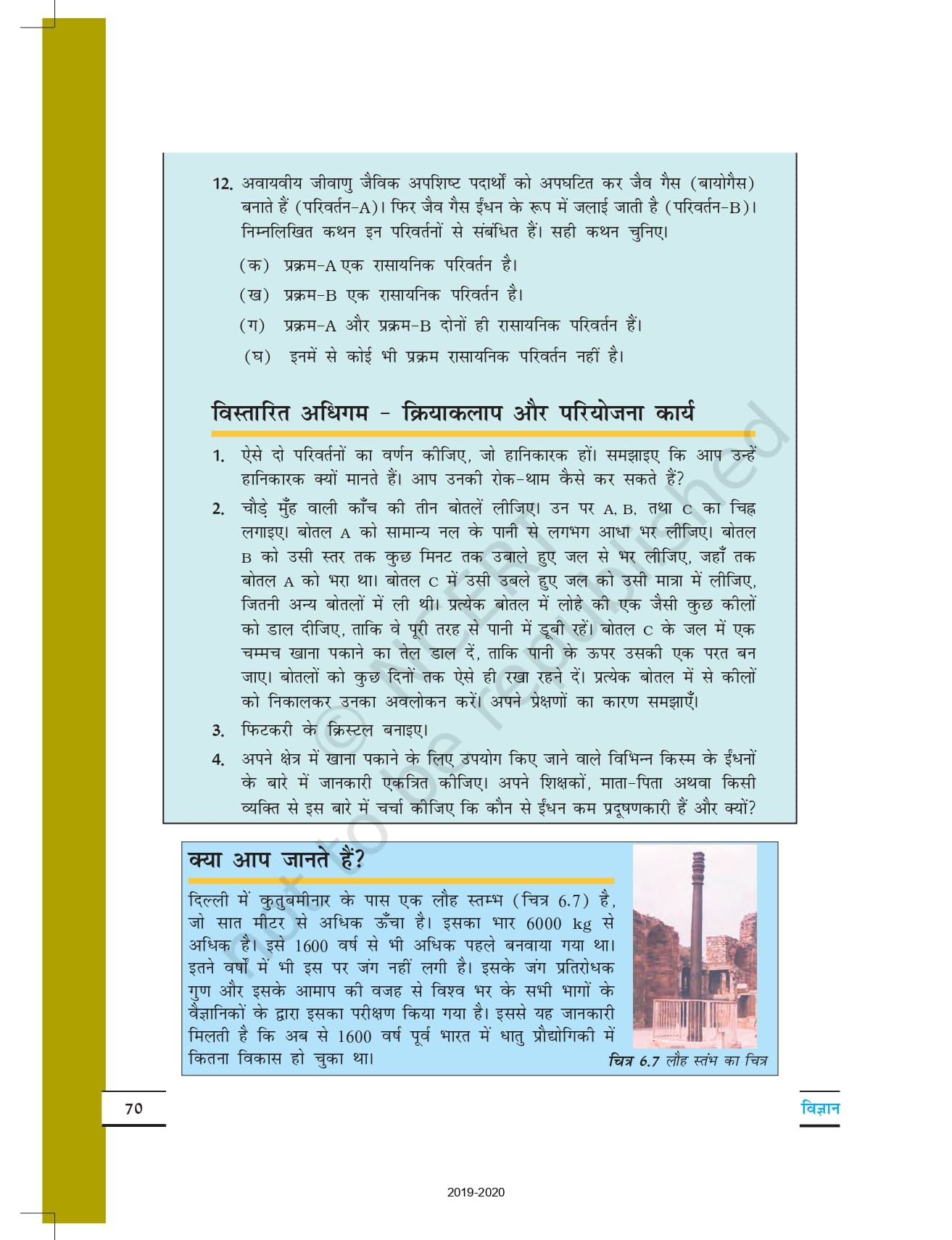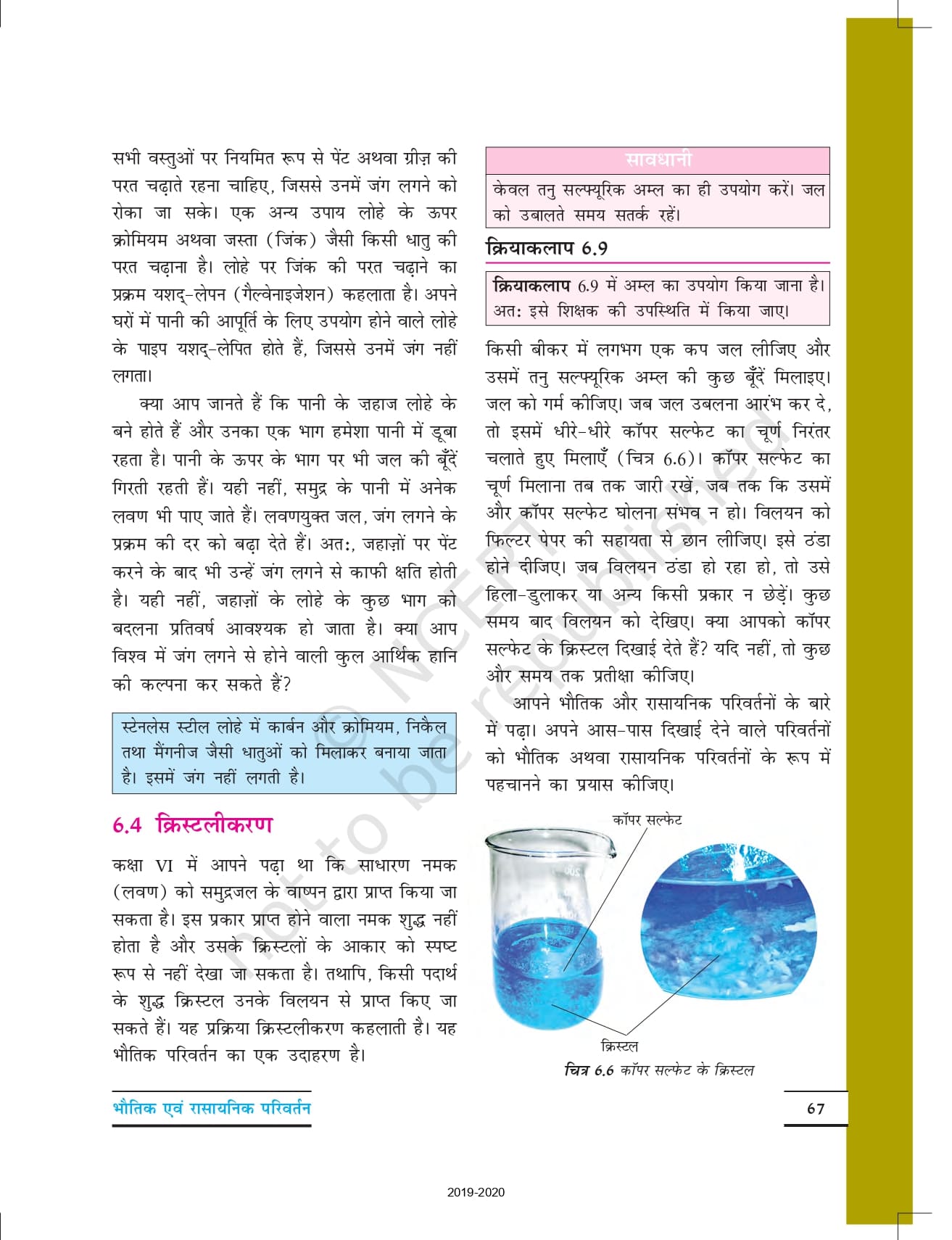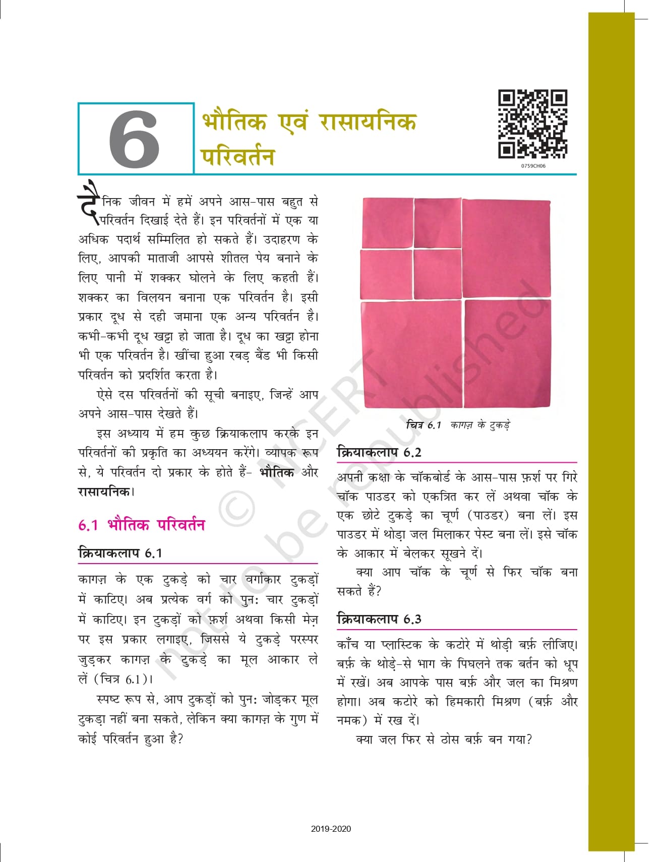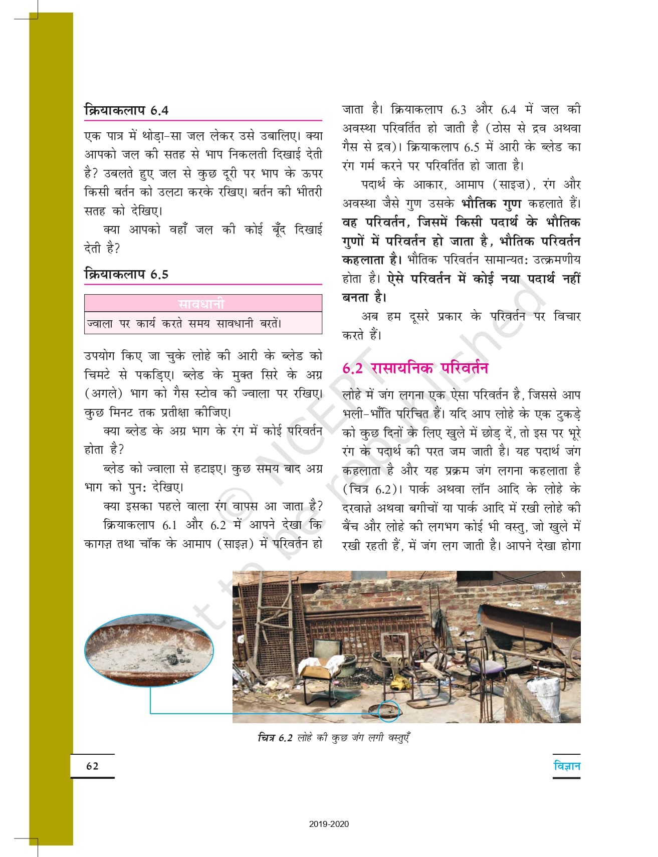 Ncert Books Class 7 Science (विज्ञान) – Chapter 6 – भौतिक एवं रासायनिक परिवर्तन