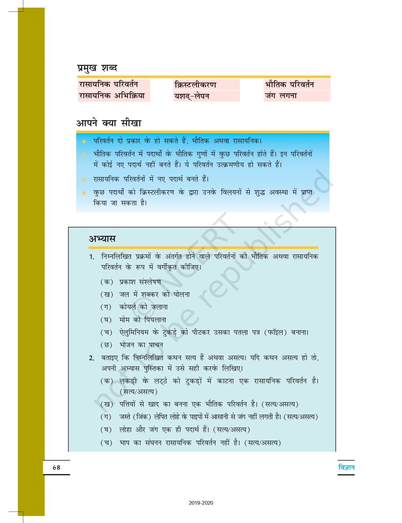 - अध्याय 6: भौतिक एवं रासायनिक परिवर्तन