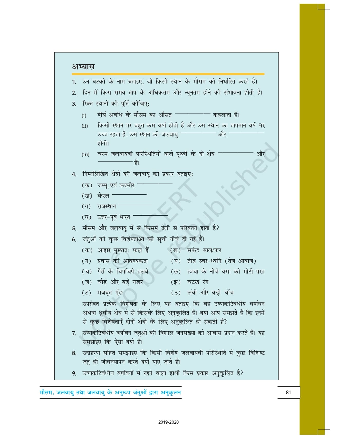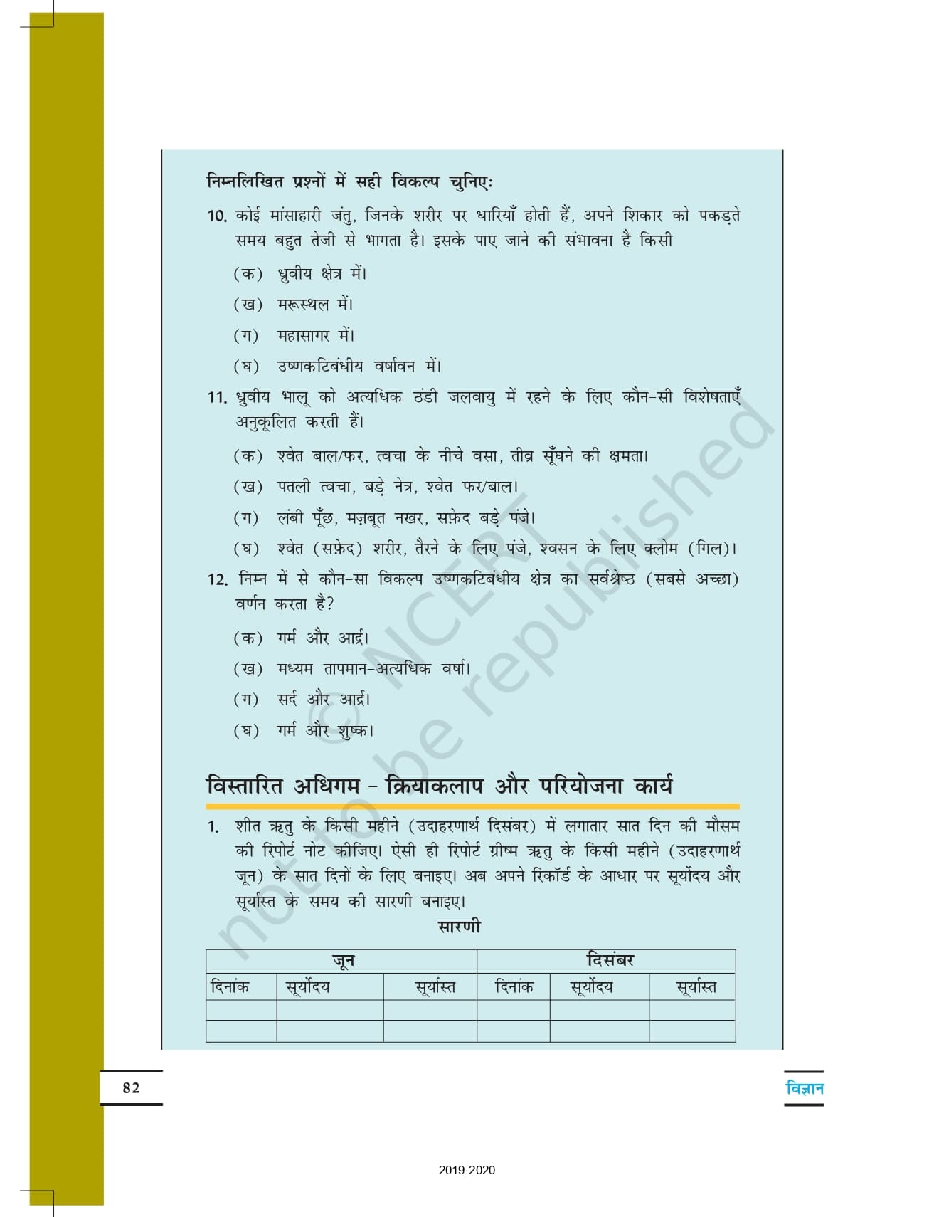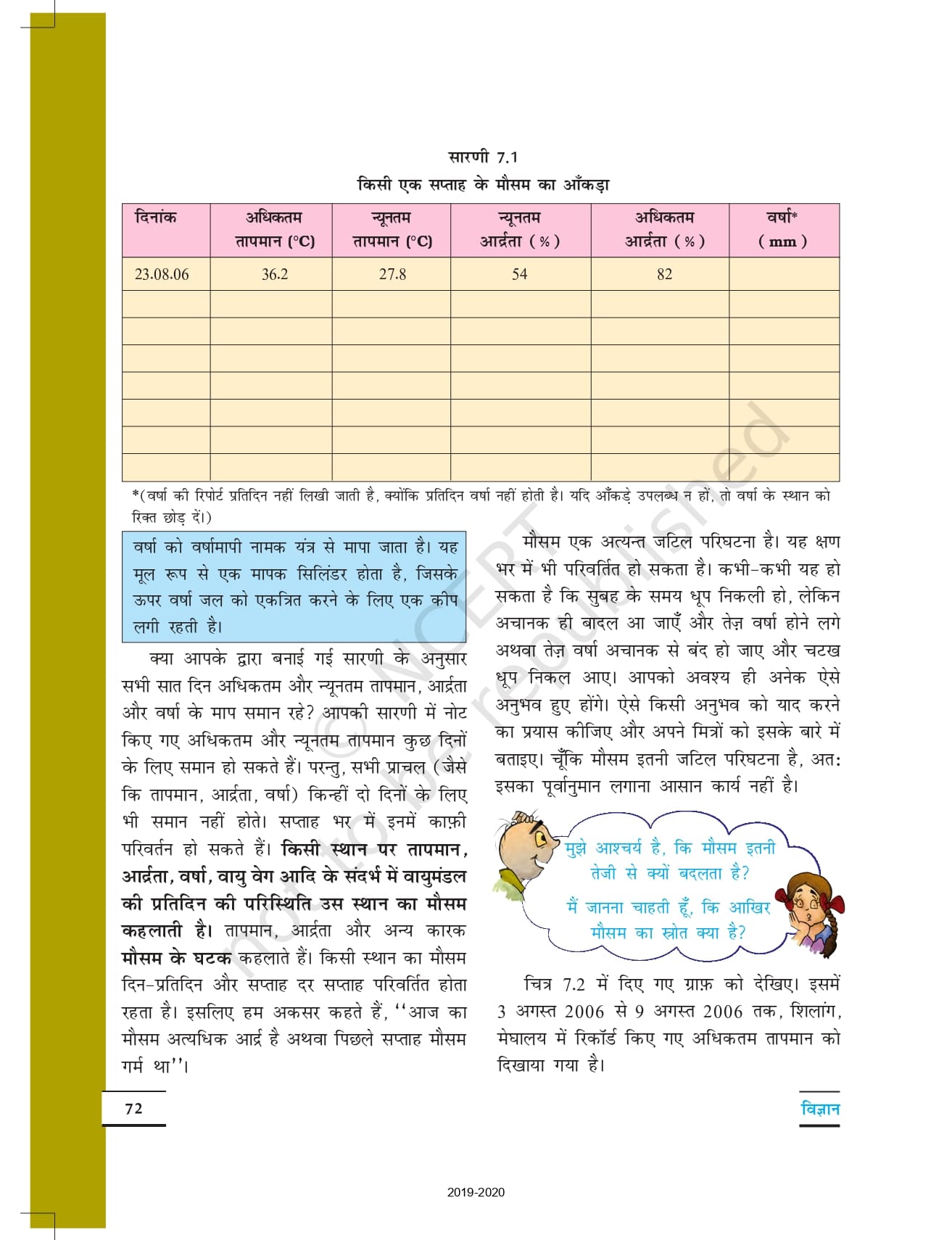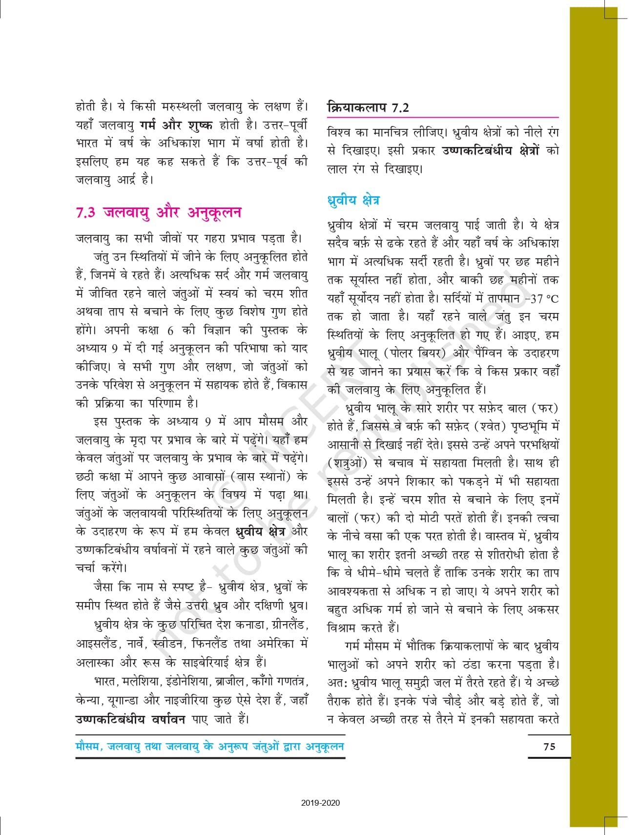 Ncert Books Class 7 Science (विज्ञान) – Chapter 7 – मौसम, जलवायु तथा जलवायु के अनुरूप जंतुओं द्वारा अनुकूल