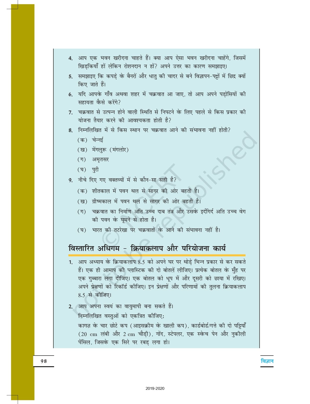 Ncert Books Class 7 Science (विज्ञान) – Chapter 8 – पवन, तूफ़ान और चक्रवात