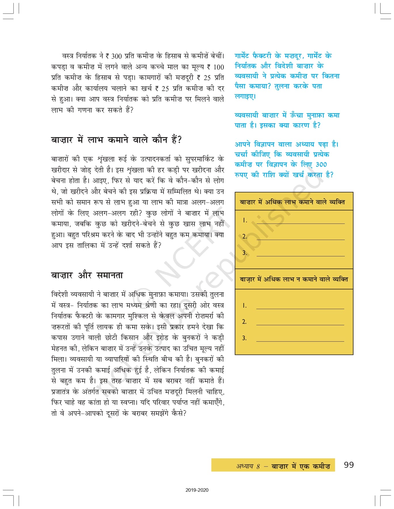 Ncert Books Class 7 Social Science सामाजिक एवं राजनितिक जीवन – Chapter 8 – बाज़ार में एक कमीज़