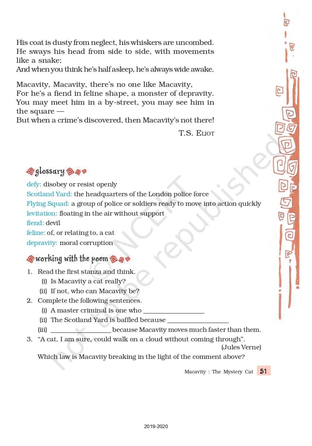 Ncert Books Class 8 English Honeydew – Chapter 3 – Glimpses of the Past & Macavity: The Mystery Cat