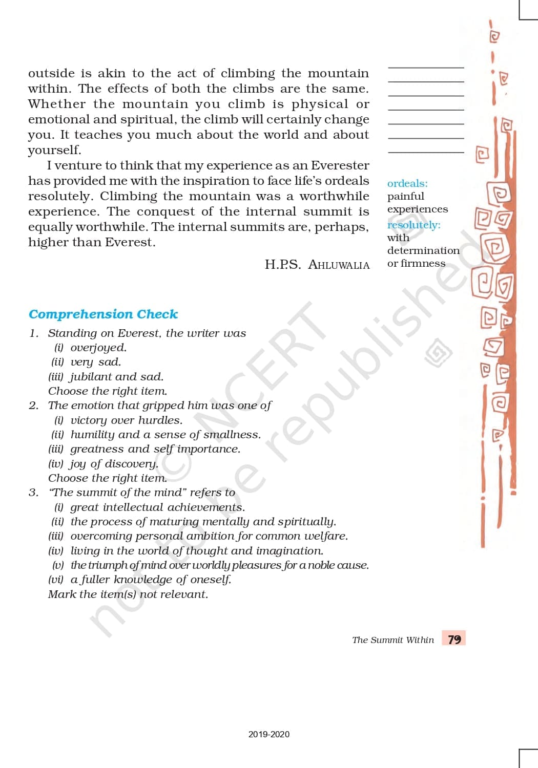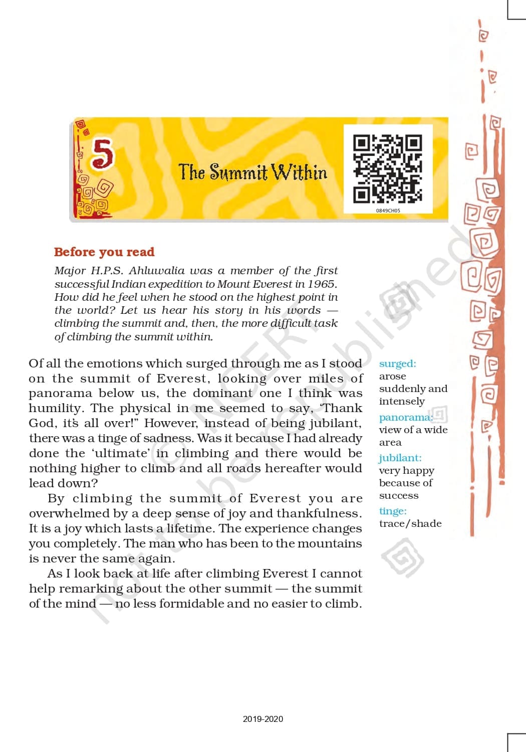Class 8 Ncert Book English Honeydew Chapter 5 – The Summit Within & The School Boy