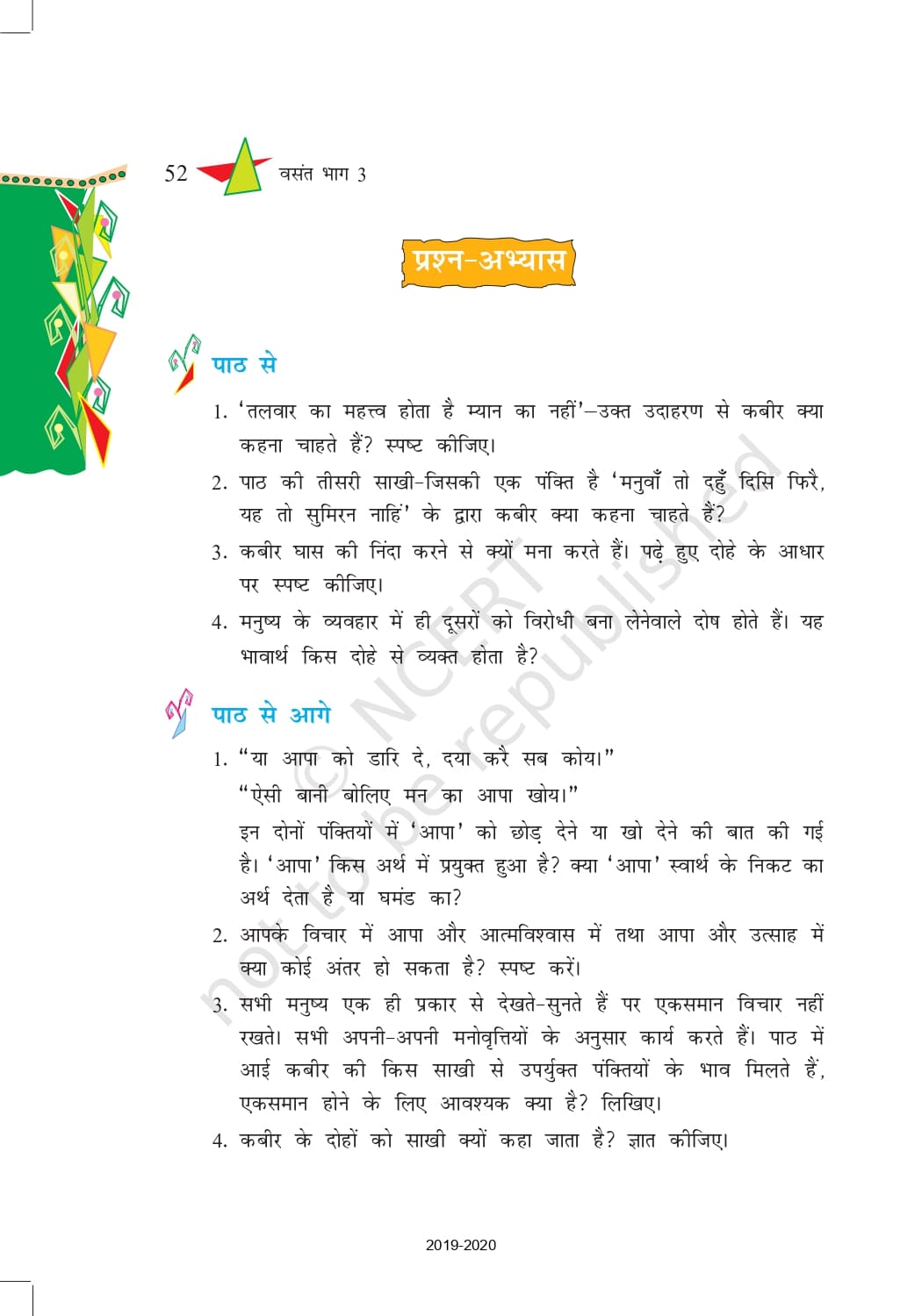 Ncert Books Class 8 Hindi Vasant वसंत Pdf – Chapter 9 – कबीर की साखियॉं