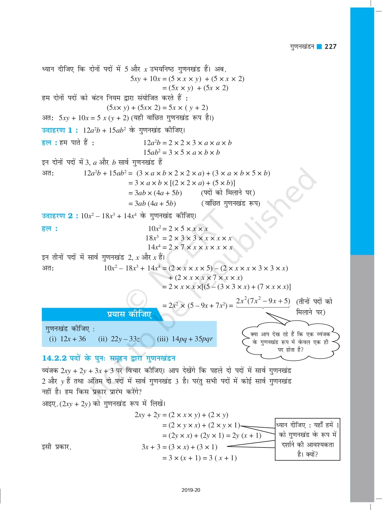 Ncert Books Class 8 गणित Pdf – Chapter 14 – गुणनखंडन