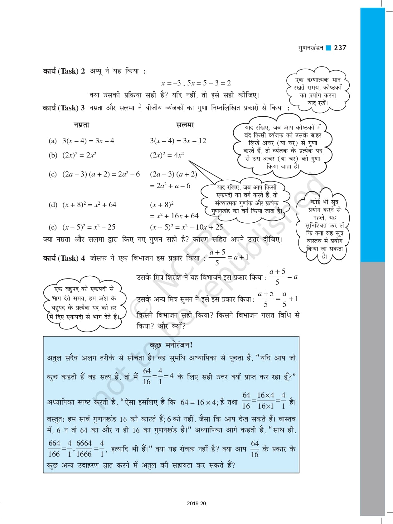 - अध्याय 9: बीजीय व्यंजक एवं सर्वसमिकाएँ