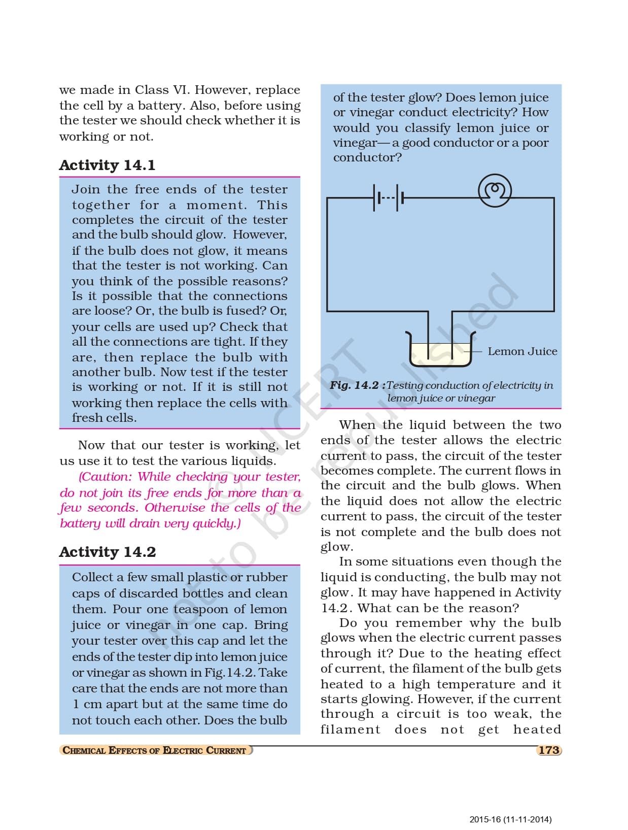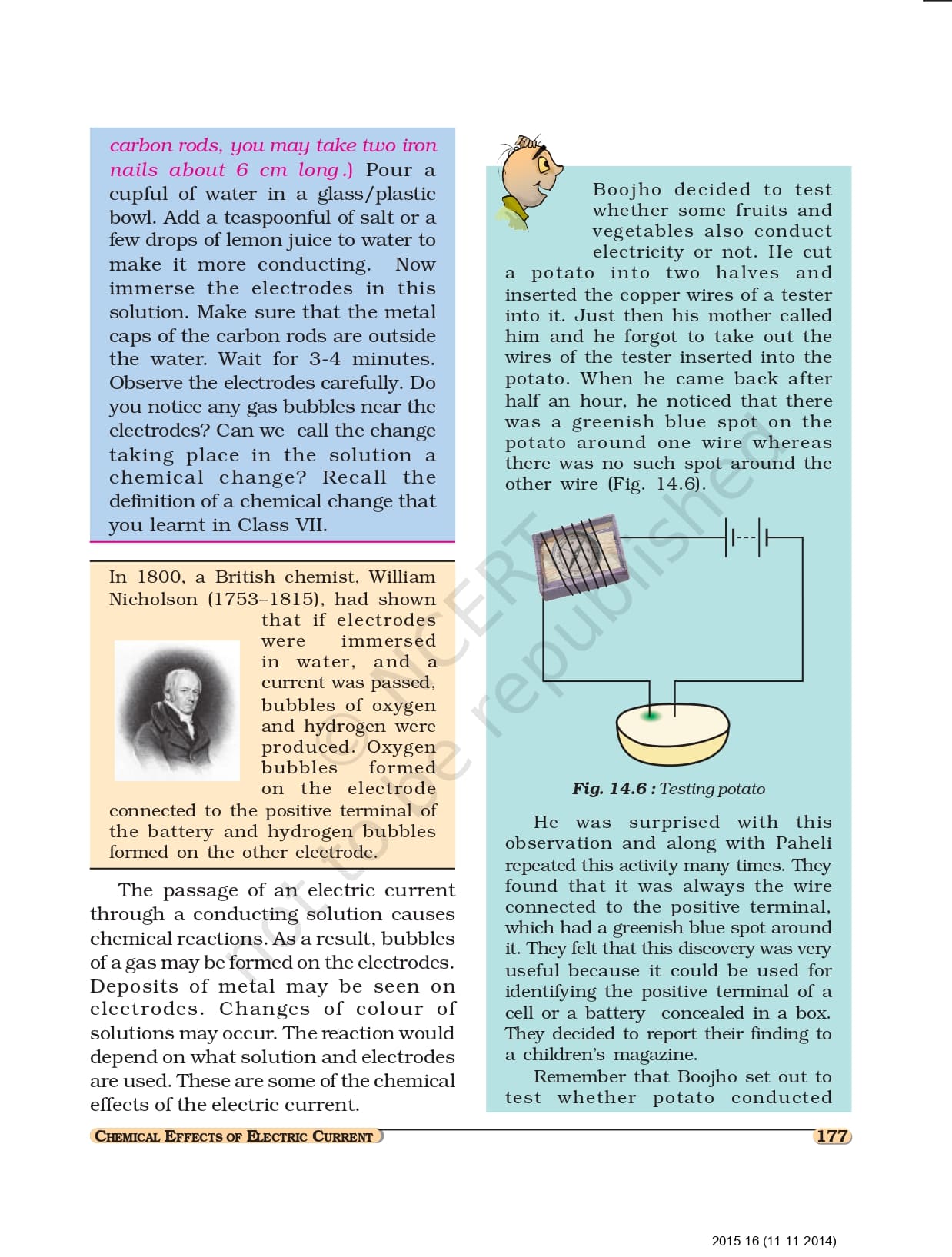 Class 8 Ncert Book Science PDF Chapter 14 – Chemical Effects of Electric Current