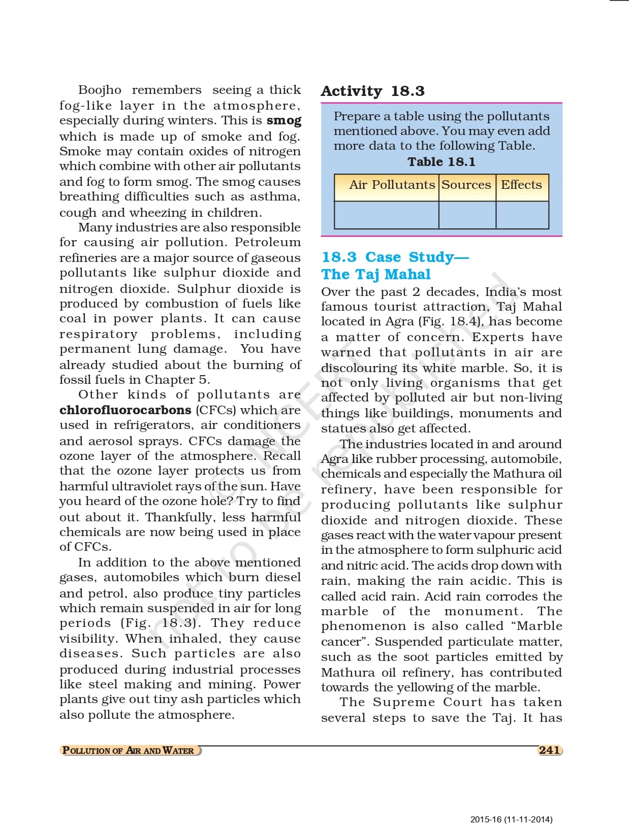 Class 8 Ncert Book Science PDF Chapter 18 – Pollution of Air and Water