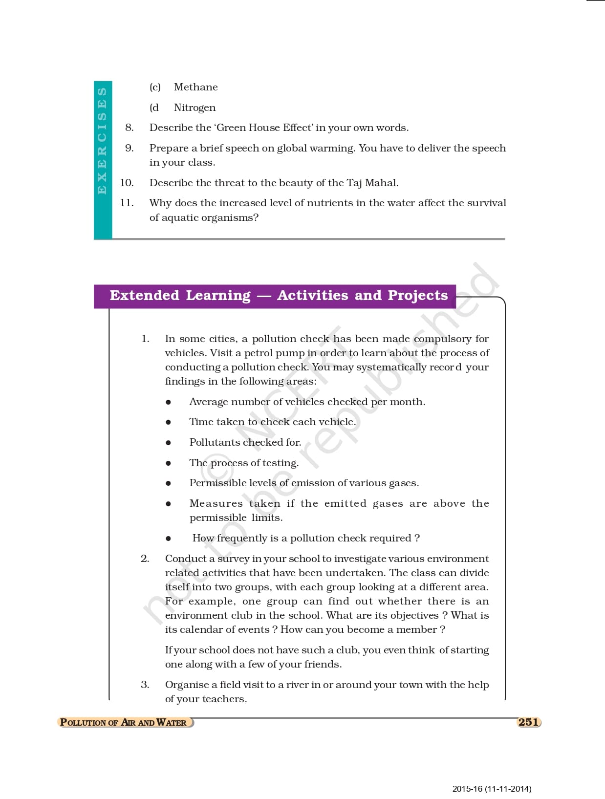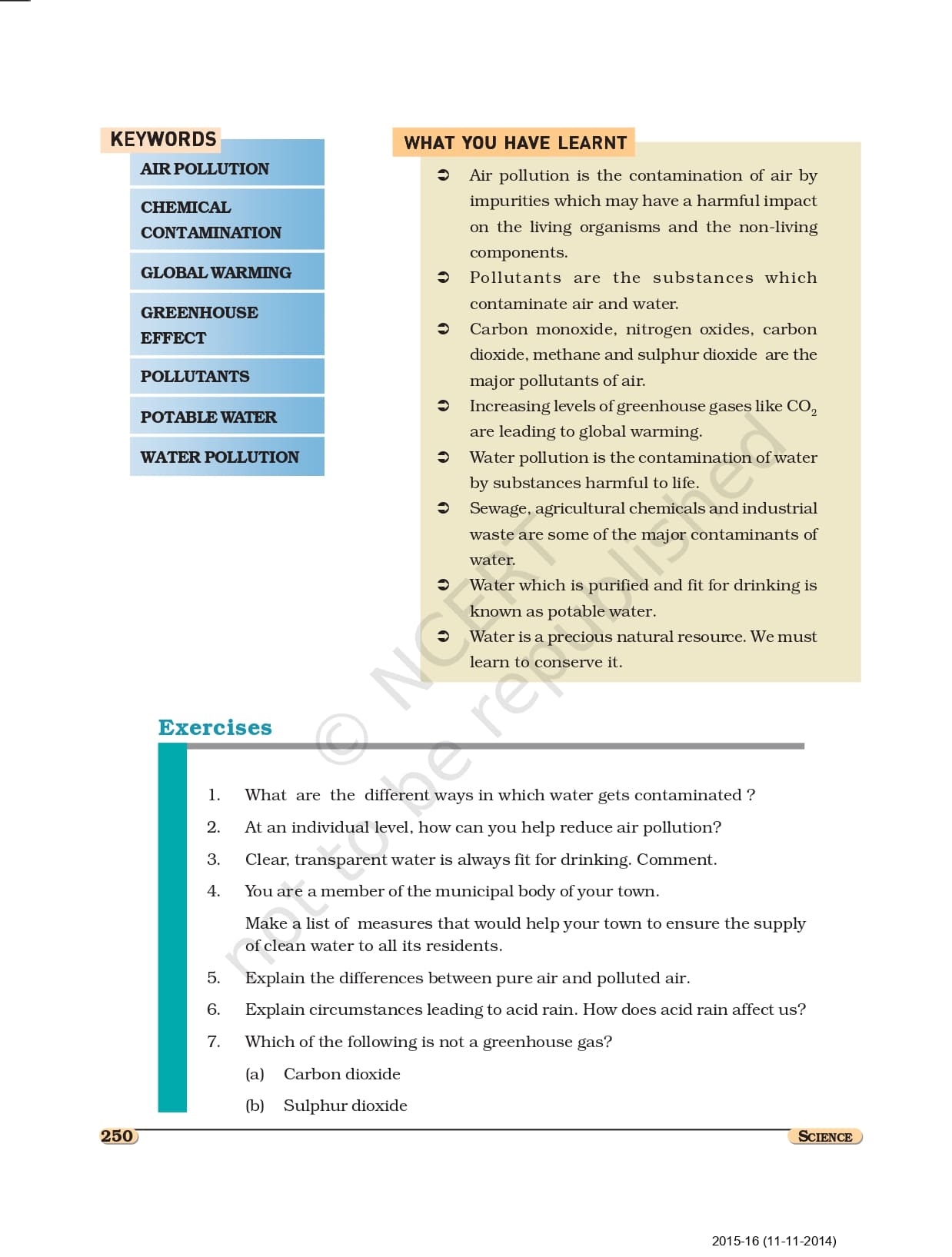 Ncert Books Class 8 Science – Chapter 18 – Pollution of Air and Water