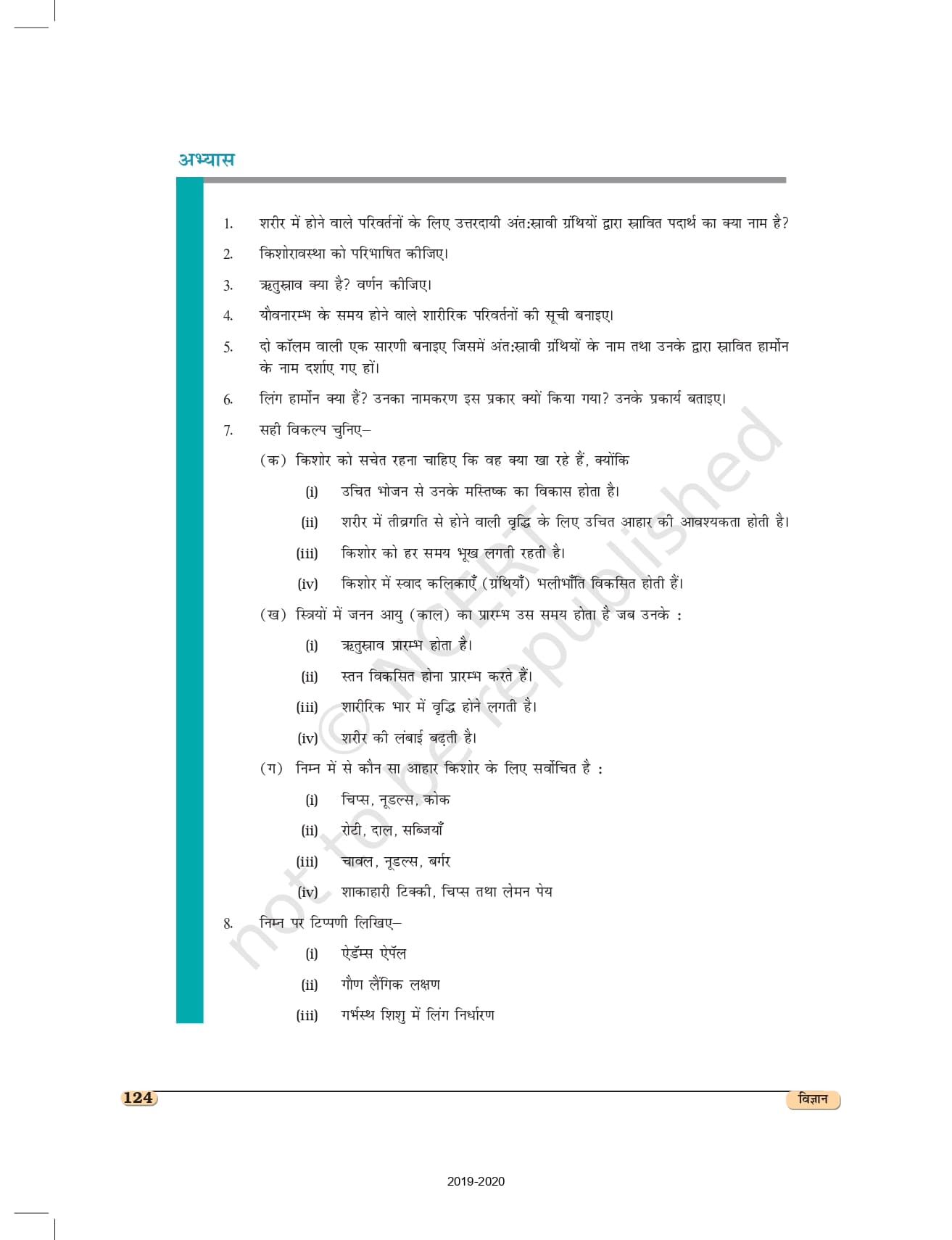 Ncert Books Class 8 Science (विज्ञान) – Chapter 10 – किशोरावस्था की ओर
