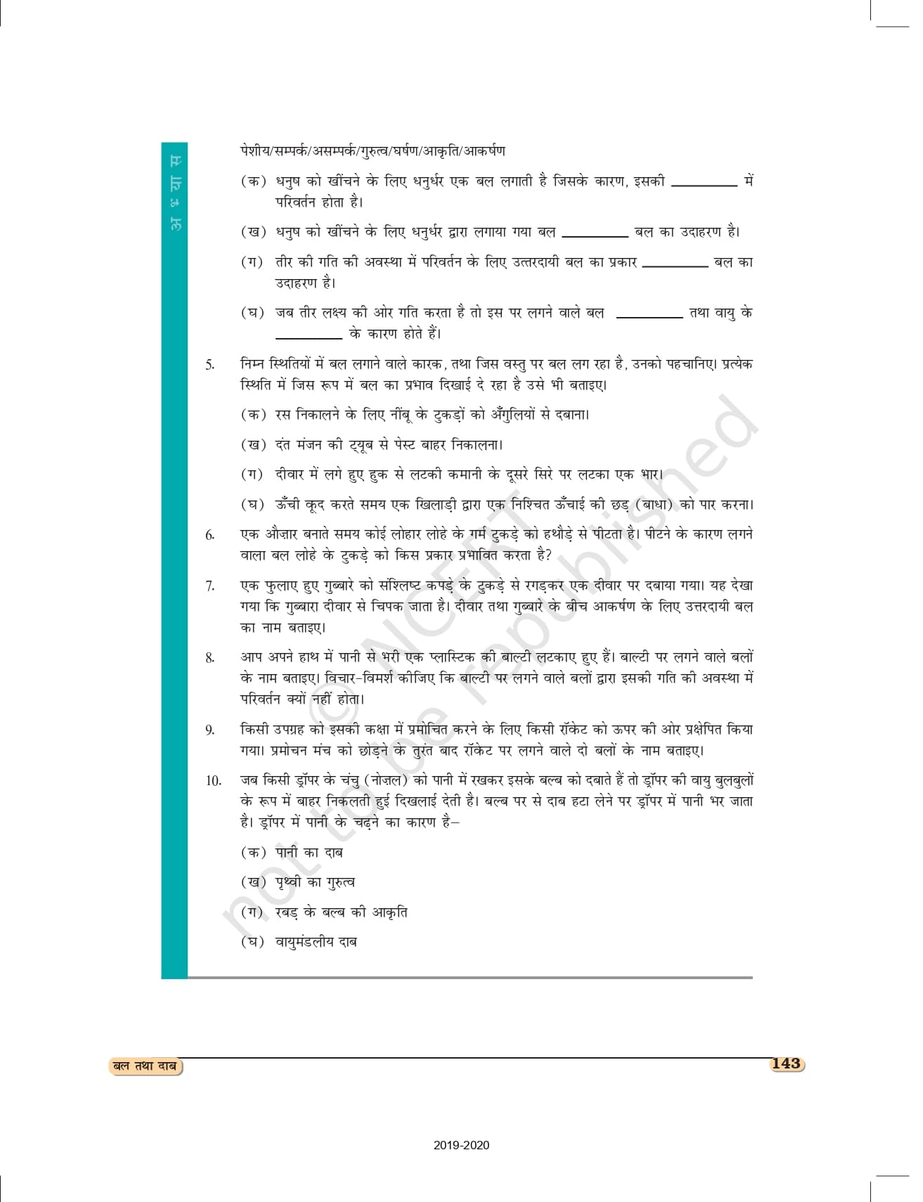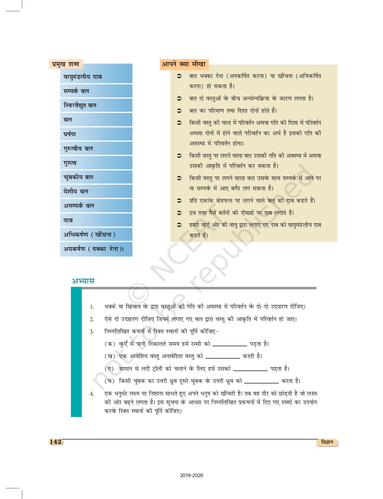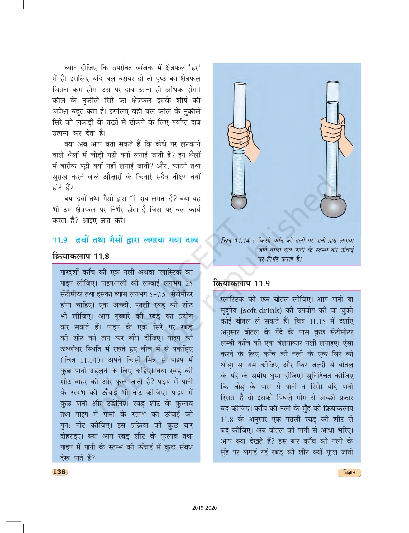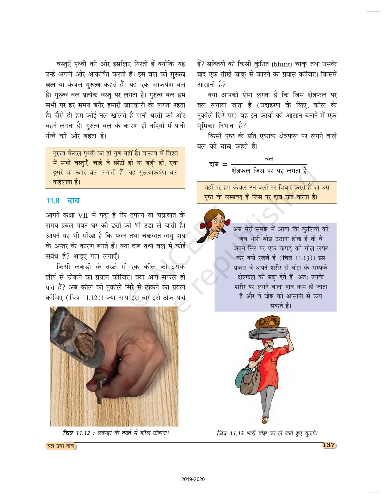 Ncert Books Class 8 Science (विज्ञान) – Chapter 11 – बल तथा दाब