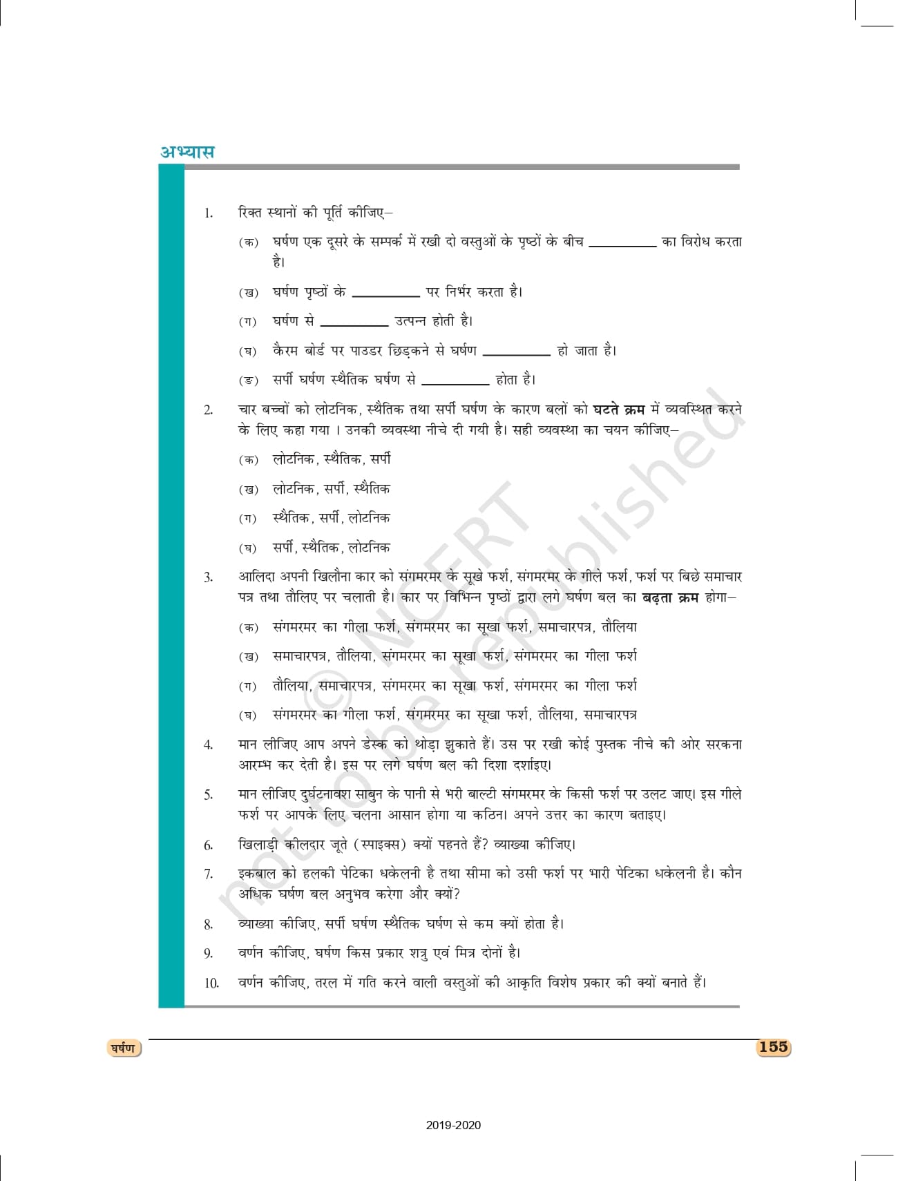 Ncert Books Class 8 Science (विज्ञान) – Chapter 12 -घर्षण