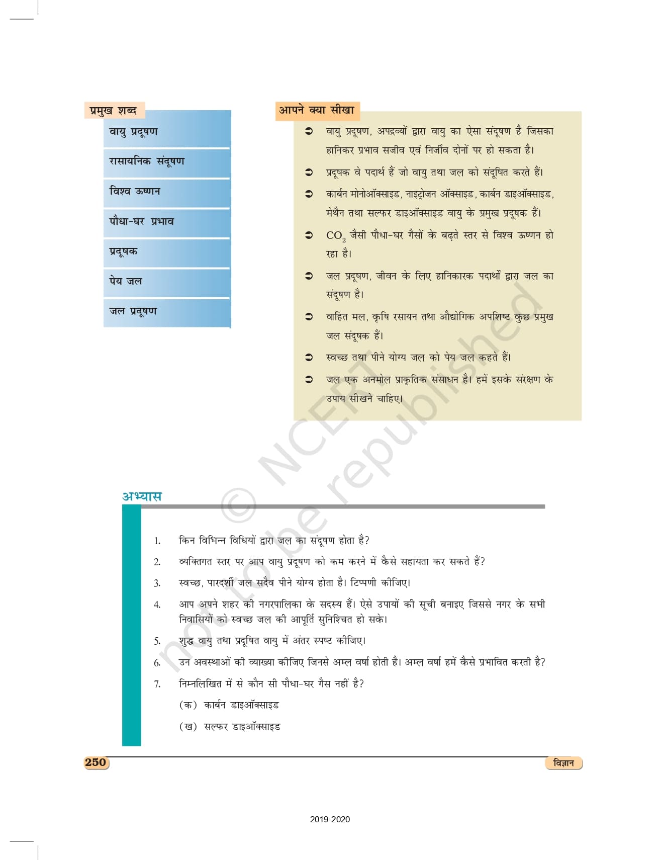 Ncert Books Class 8 Science (विज्ञान) – Chapter 18 – वायु तथा जल का प्रदूषण