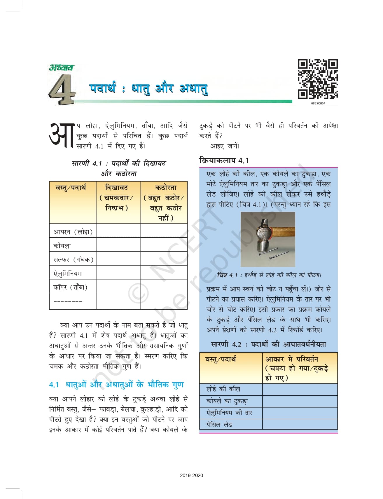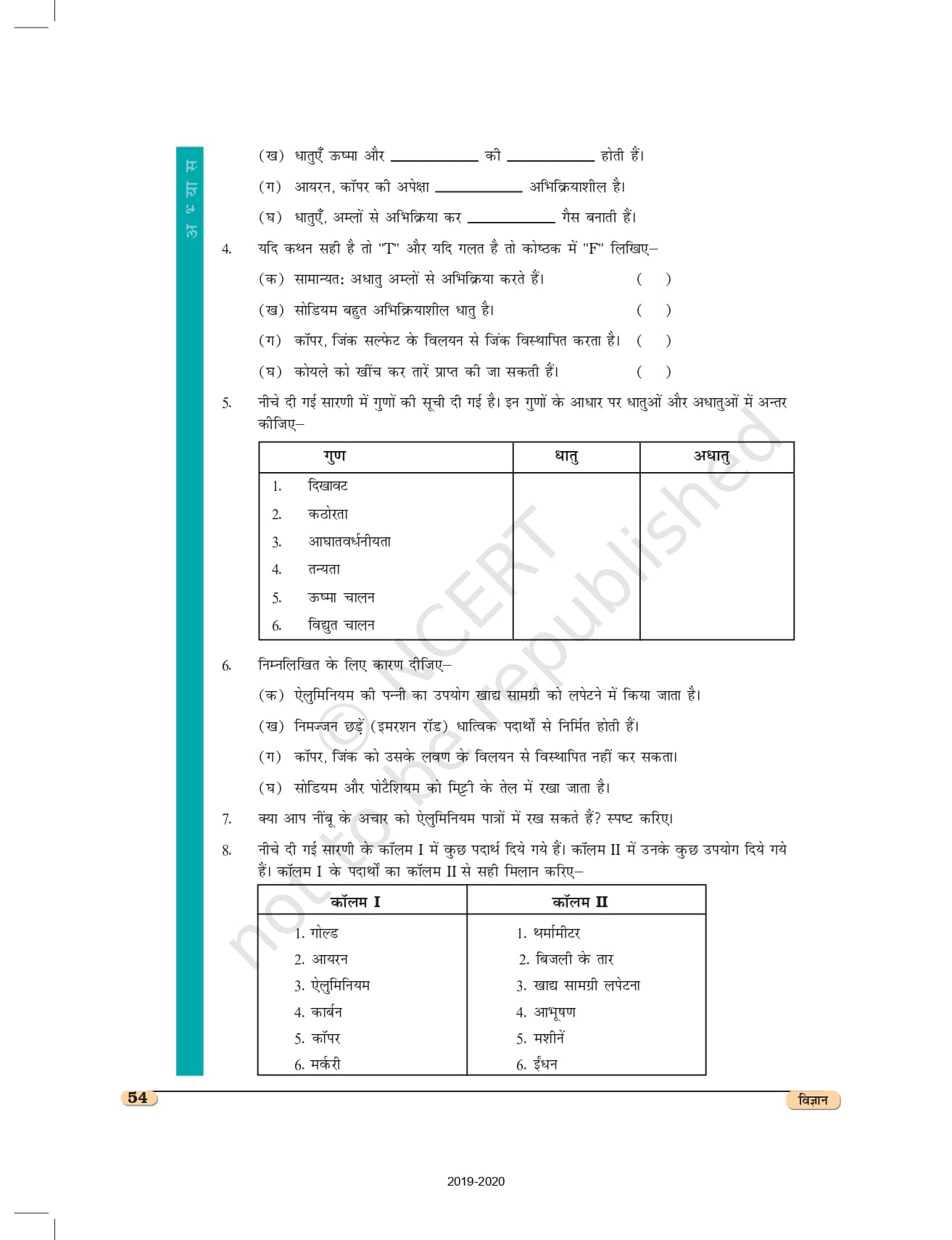 Ncert Books Class 8 Science (विज्ञान) – Chapter 4 – पदार्थ: धातु और अधातु