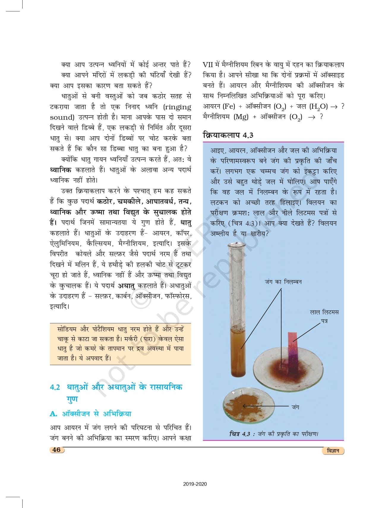 - अध्याय 4: पदार्थ: धातु और अधातु
