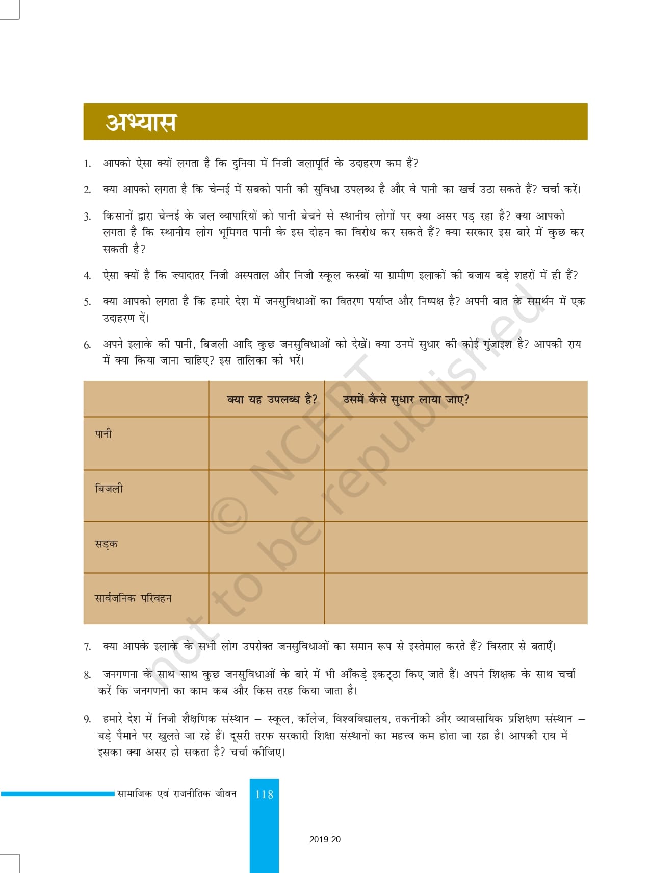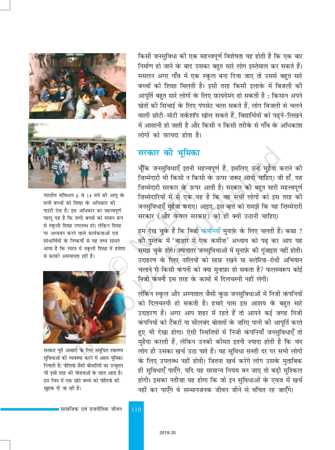 Ncert Books Class 8 Social Science सामाजिक एवं राजनितिक जीवन – Chapter 9 – जनसुविधाएँ