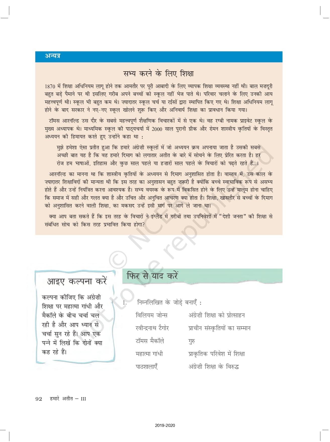 - पाठ 7: “देशी जनता” को सभ्य बनाना