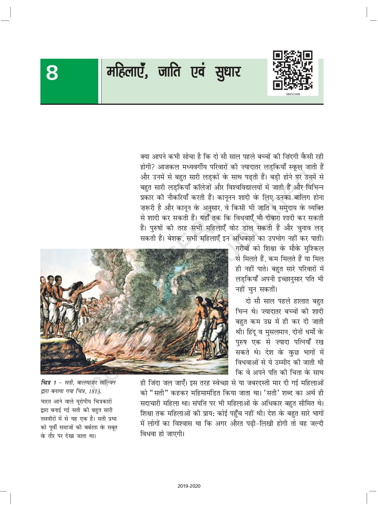Class 8 Ncert Book Social Science इतिहास PDF Chapter 8 – महिलाएँ, जाति एवं सुधार