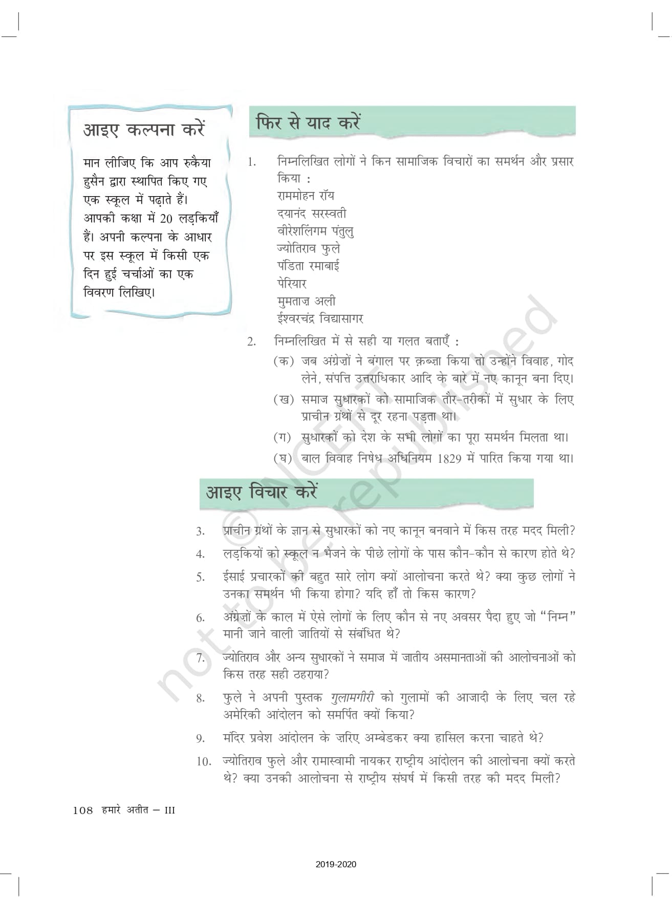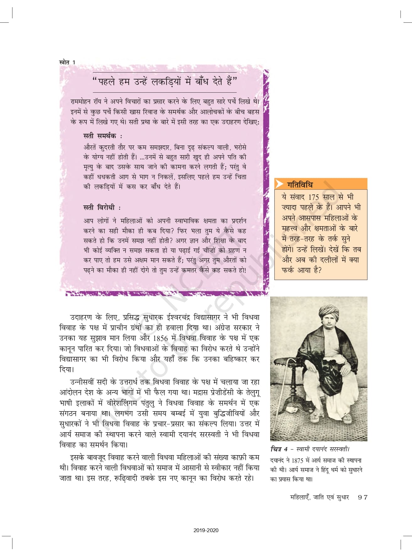 Ncert Books Class 8 Social Science इतिहास हमारे अतीत – III – Chapter 8 – महिलाएँ, जाति एवं सुधार